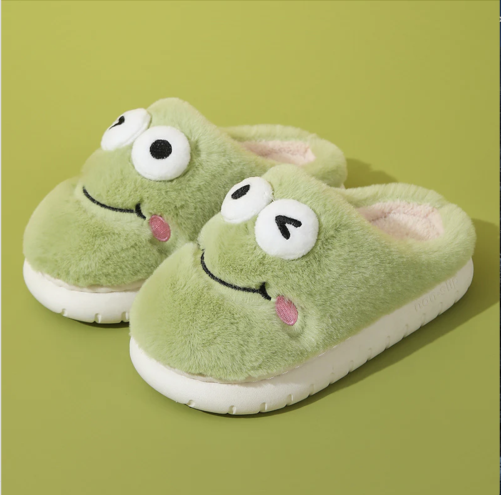 Веселі капці з виразними оченятами та доброю посмішкою жабки перетворять звичайне перевзування на цікаву гру. Густий плюшевий матеріал надійно зберігає тепло, а міцна підошва дозволяє дитині безпечно бігати по дому.