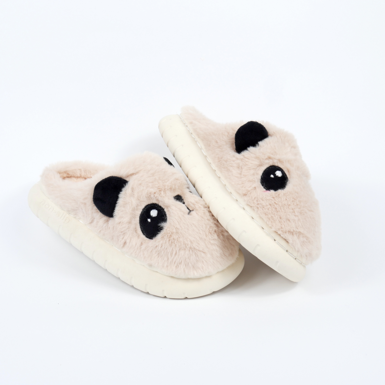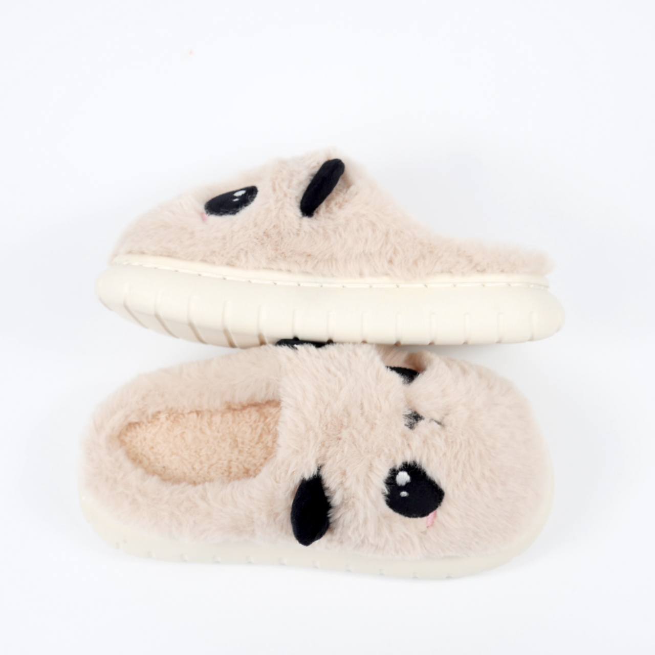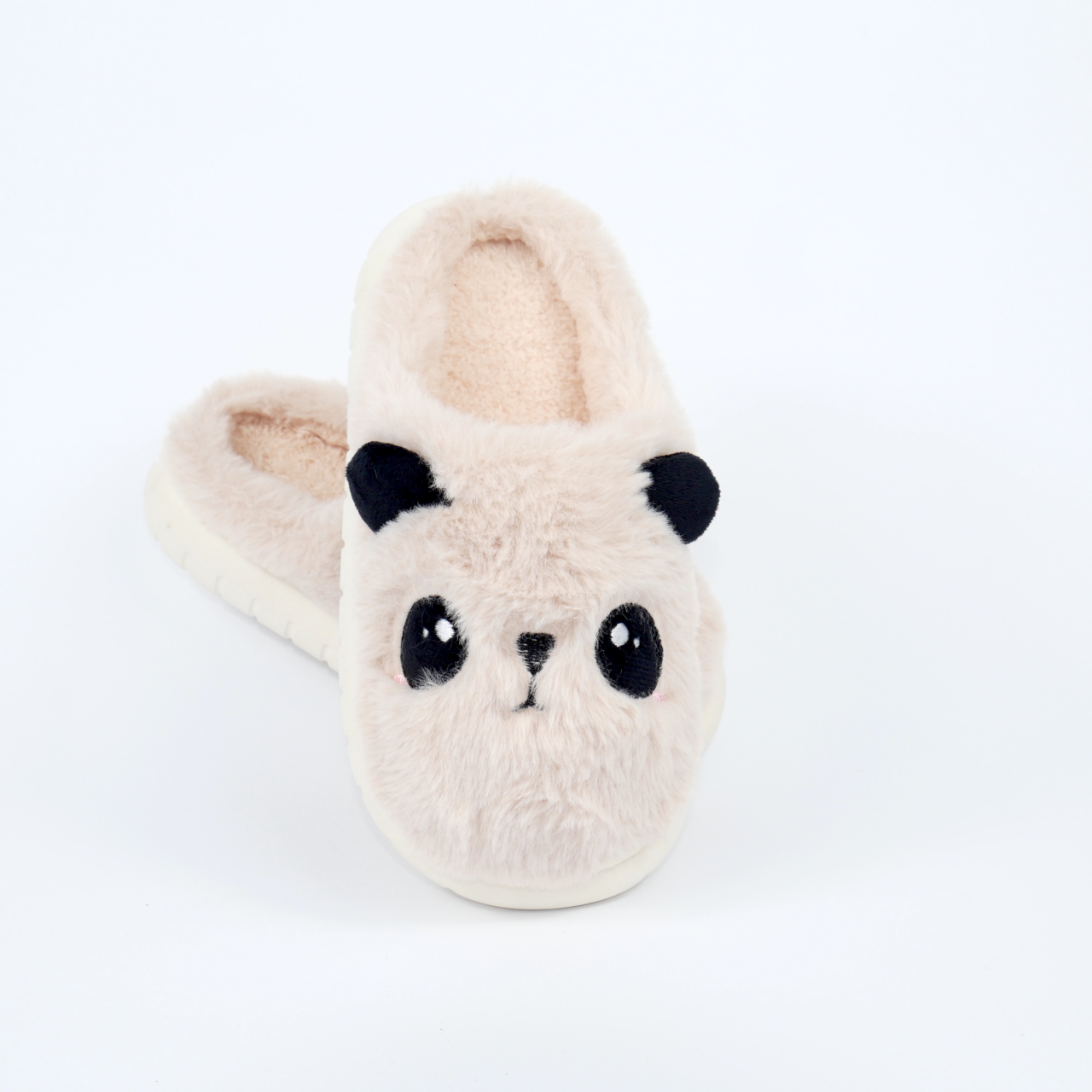 Ці пухнасті бежеві тапочки у вигляді милої панди неодмінно викличуть посмішку у вашої дитини. М’яка хутряна текстура дбайливо зігріває ніжки та надасть надійний захист від холодної підлоги.