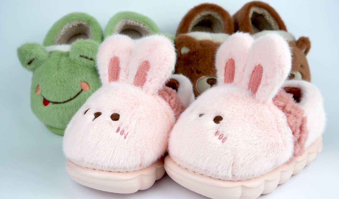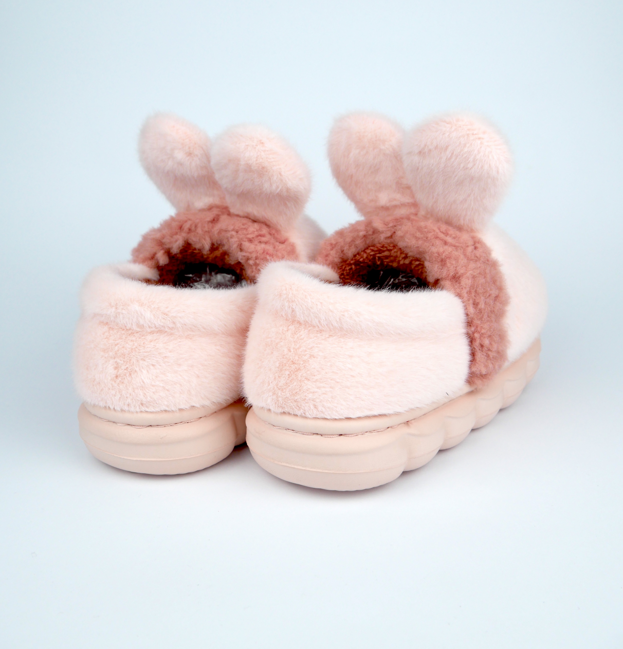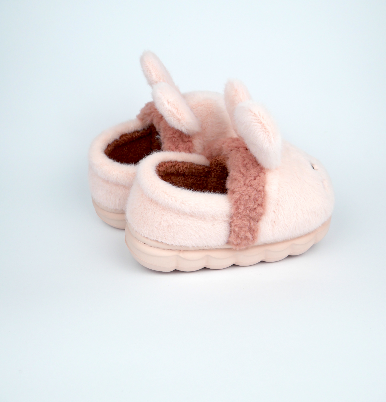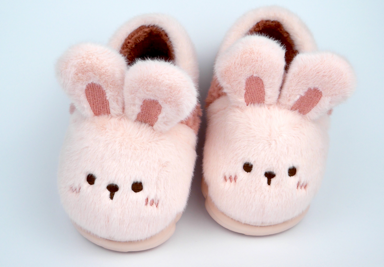 Чарівні маленькі капці виготовлені з м'якого світло-рожевого плюшу та прикрашені милою вишивкою мордочки зайчика з об'ємними вушками. Їхня закрита форма з теплою підкладкою дбайливо огортає ніжку, забезпечуючи малюку комфорт і затишок.