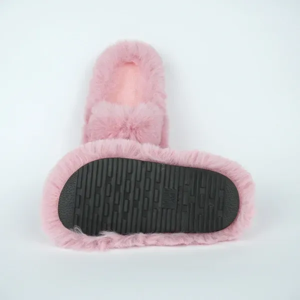 Стильні капці ніжного рожевого кольору виконані з густого штучного хутра, що надає їм трендового об'ємного вигляду. Завдяки суцільній м'якій текстурі та відкритому фасону, вони дарують ніжкам неймовірний комфорт та відчуття невагомості.