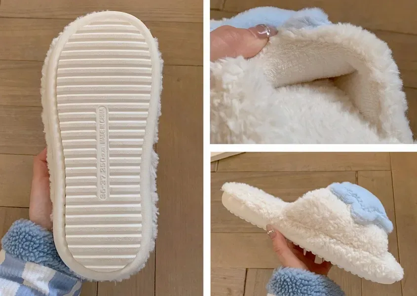 Чарівні плюшеві тапочки молочного кольору створені для справжнього домашнього затишку та релаксу. М'яка густа текстура ніжно зігріває ніжки, а відкритий фасон забезпечує комфорт протягом усього дня