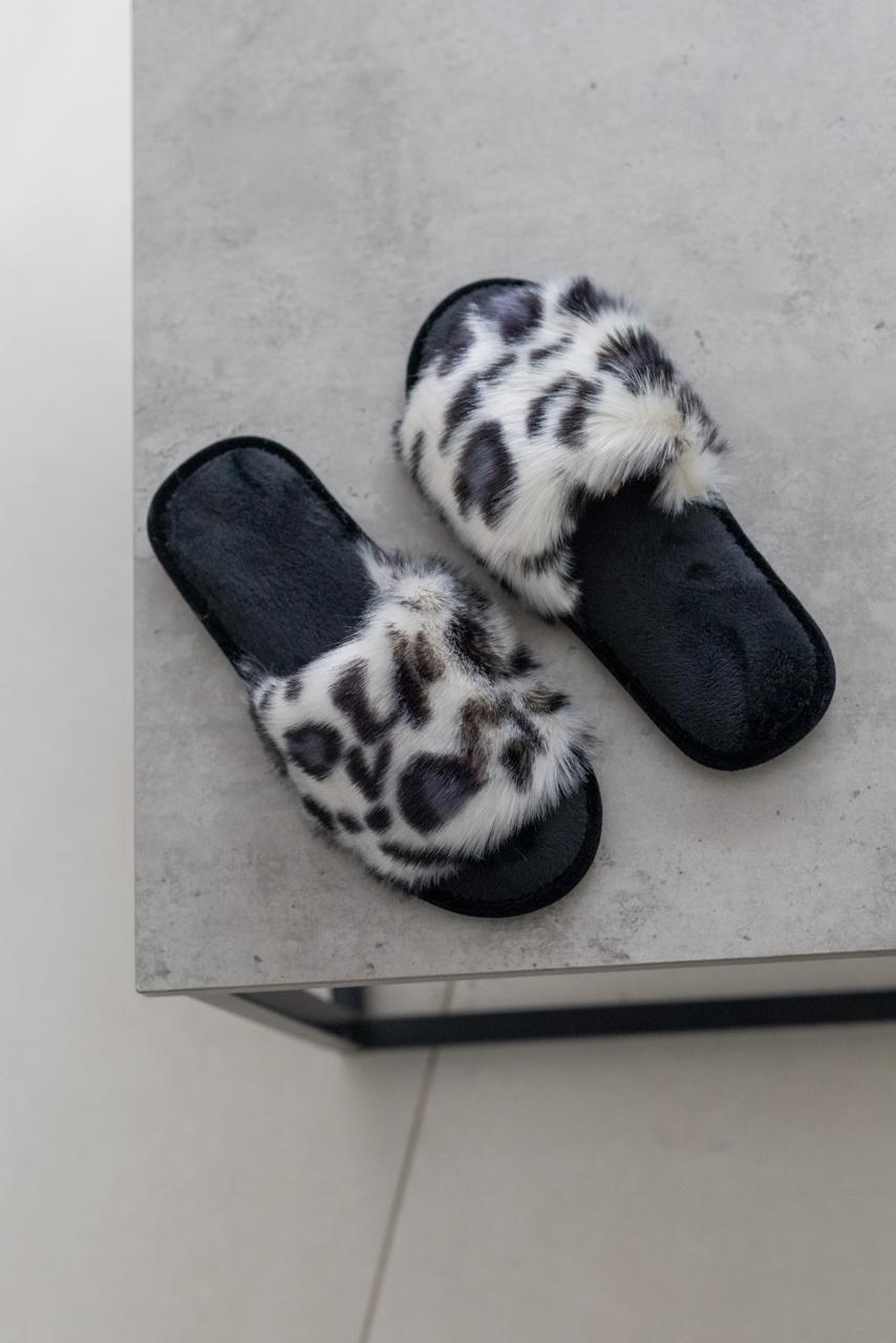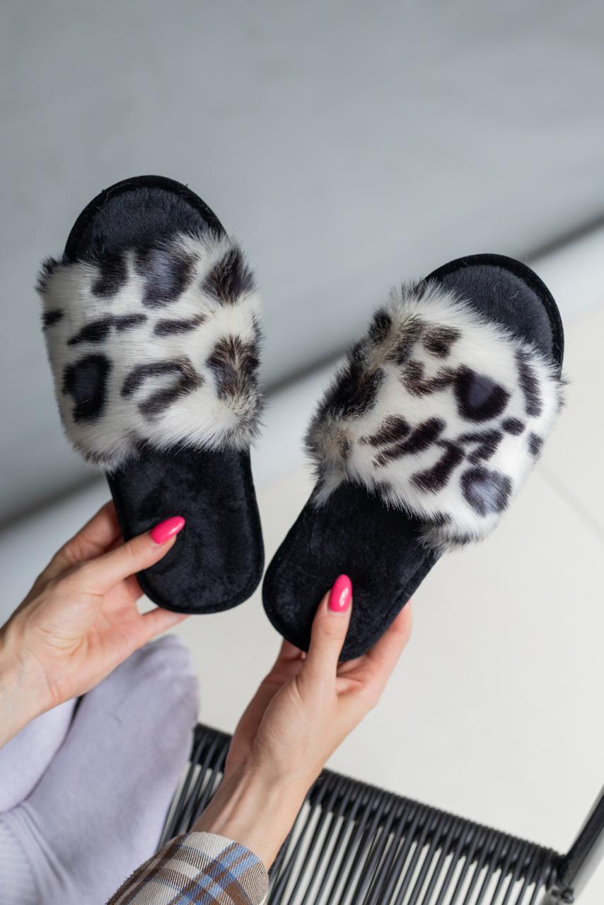 Жіночі домашні капці Halluci з хутра Білосніжний леопард