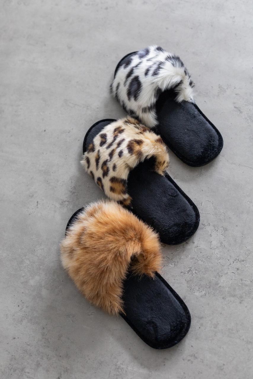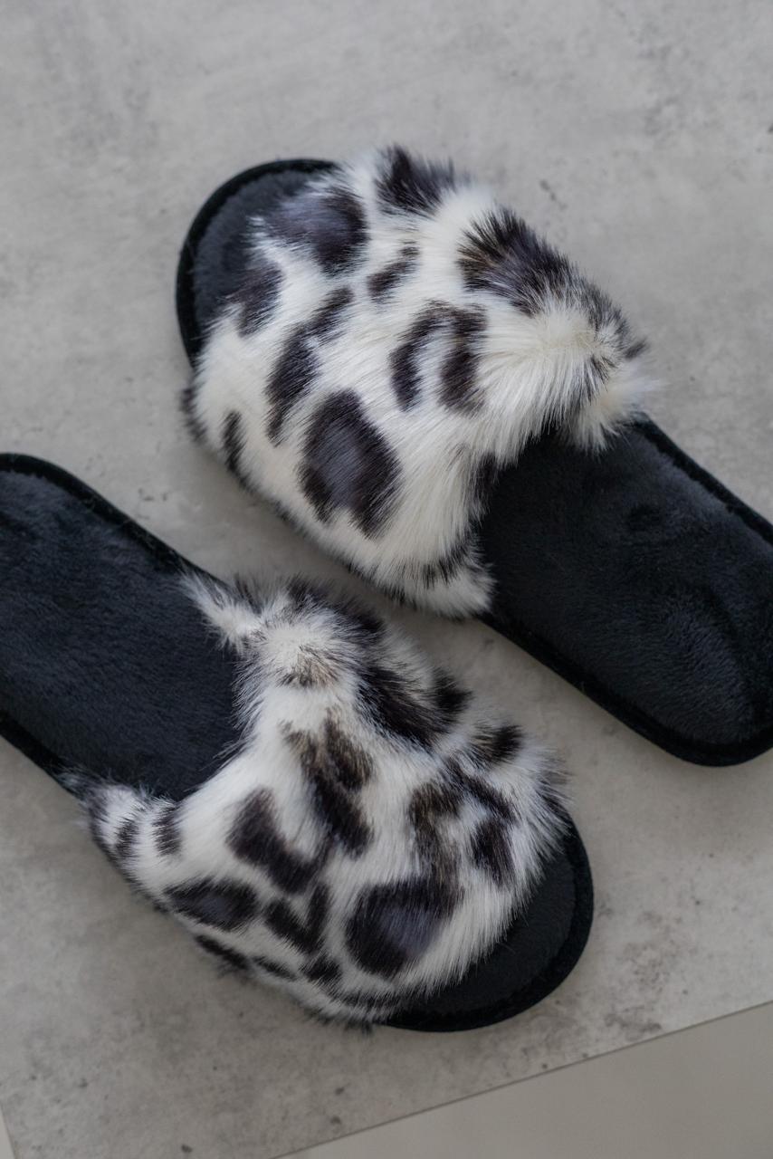 М’які домашні капці Halluci виконані з пухнастого штучного хутра з ефектним принтом «білосніжний леопард». Відкритий фасон та вишуканий дизайн поєднують у собі домашній затишок із сучасним стилем.