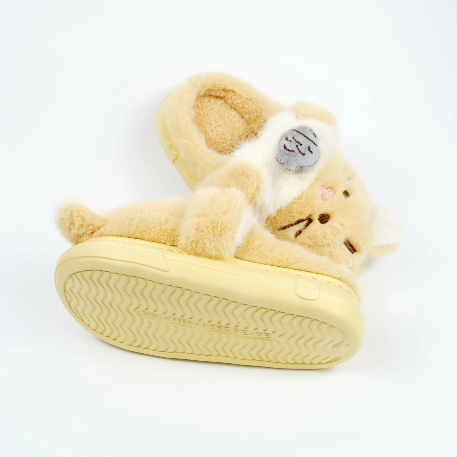 Детские комнатные тапочки «Зверята» из эко-меха (Бежевый котик)