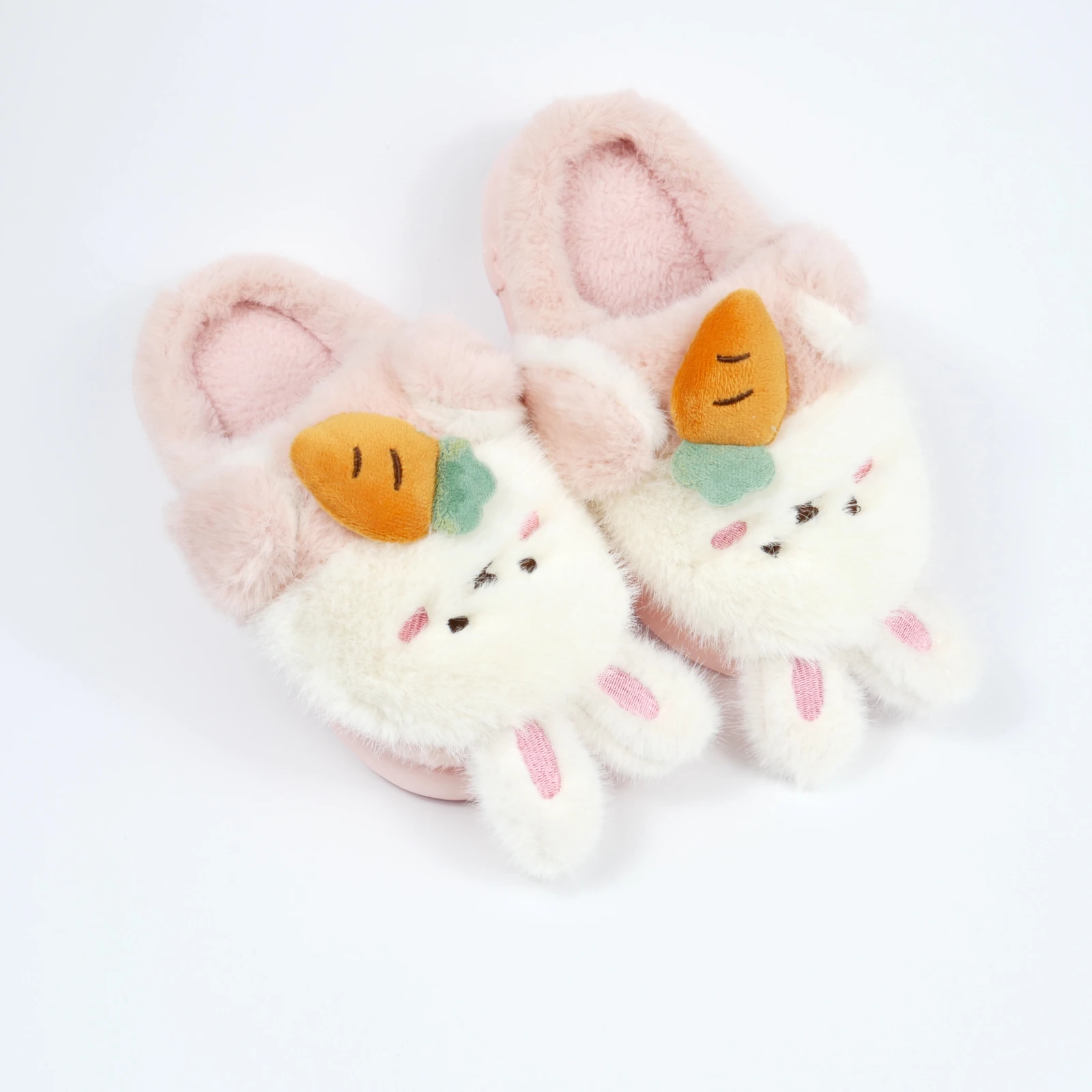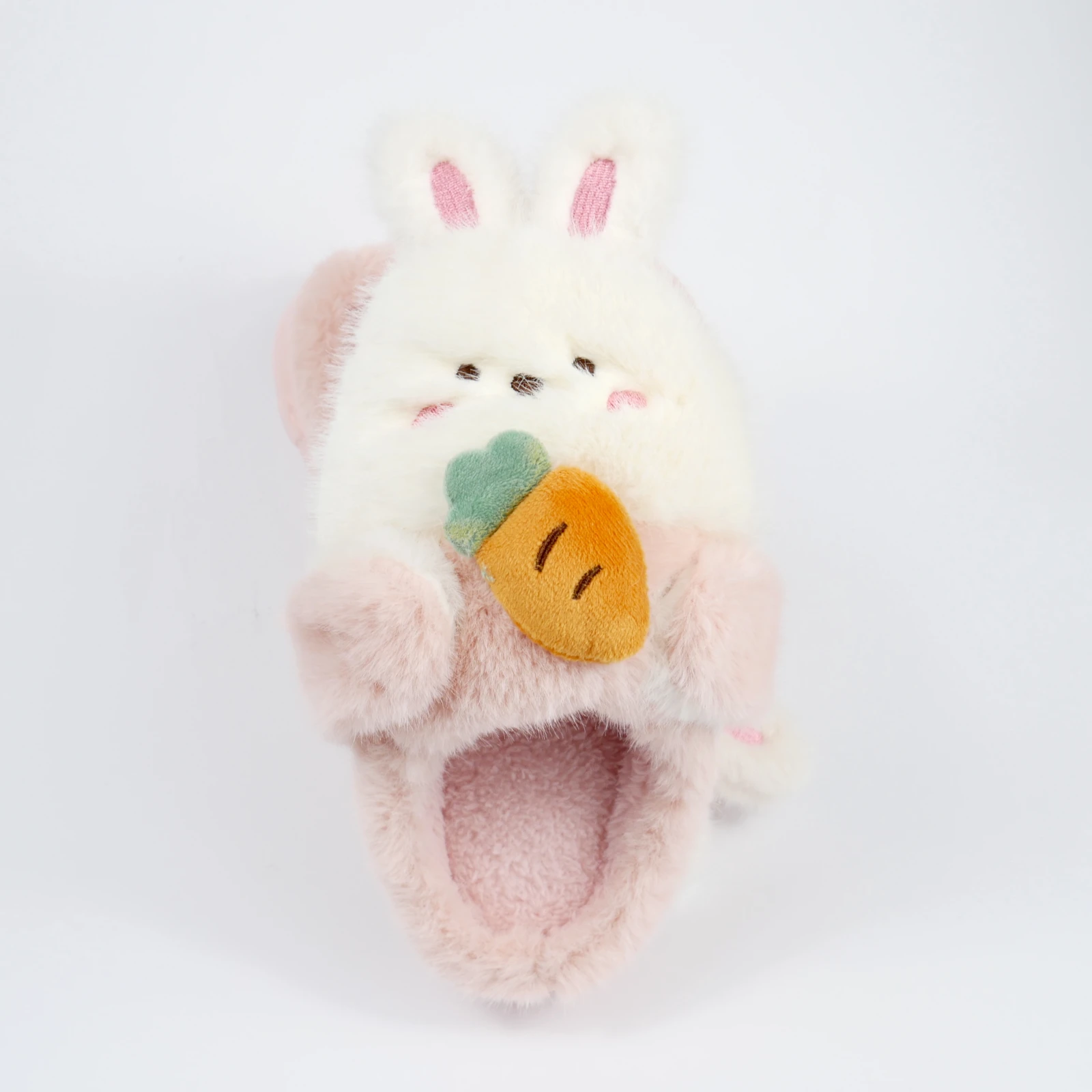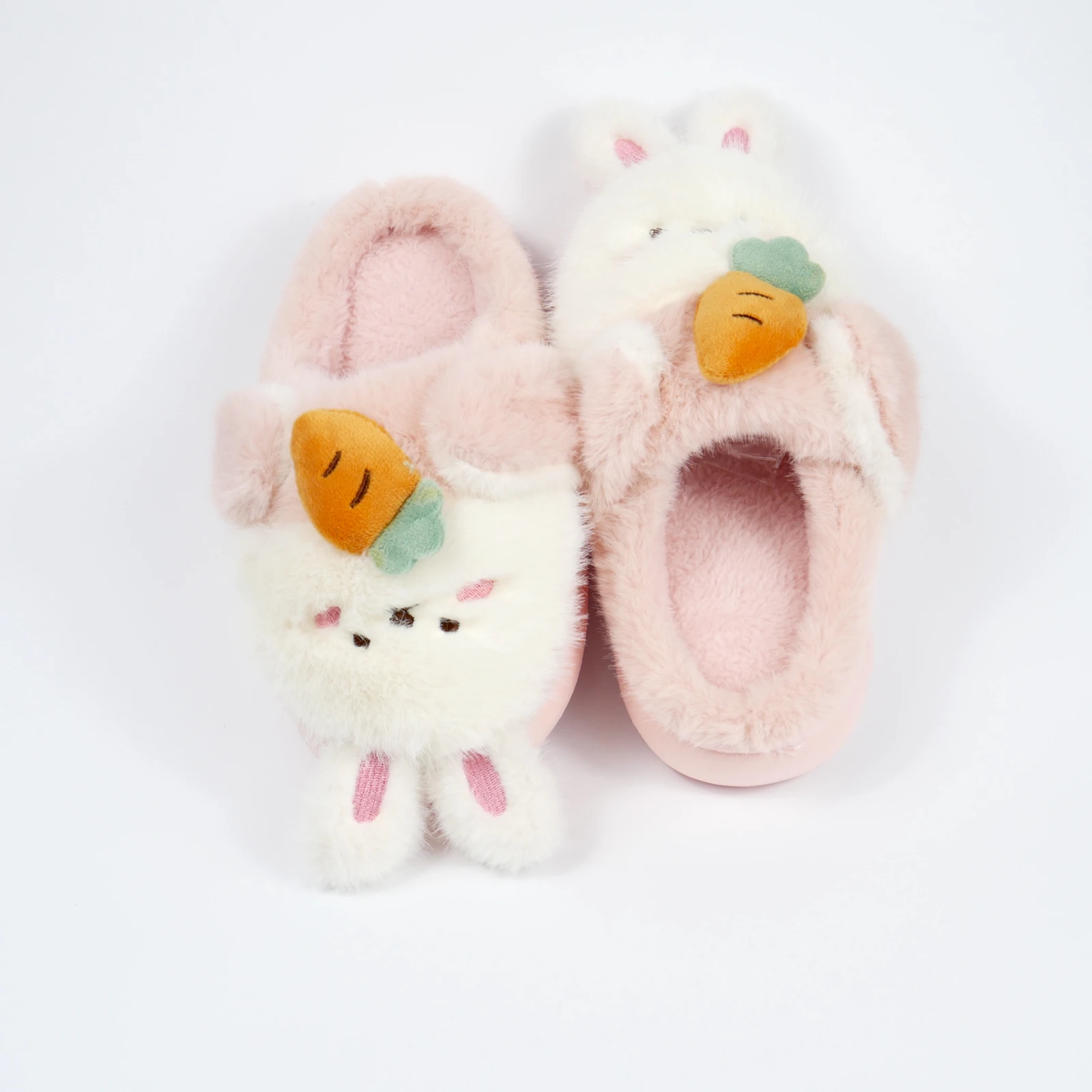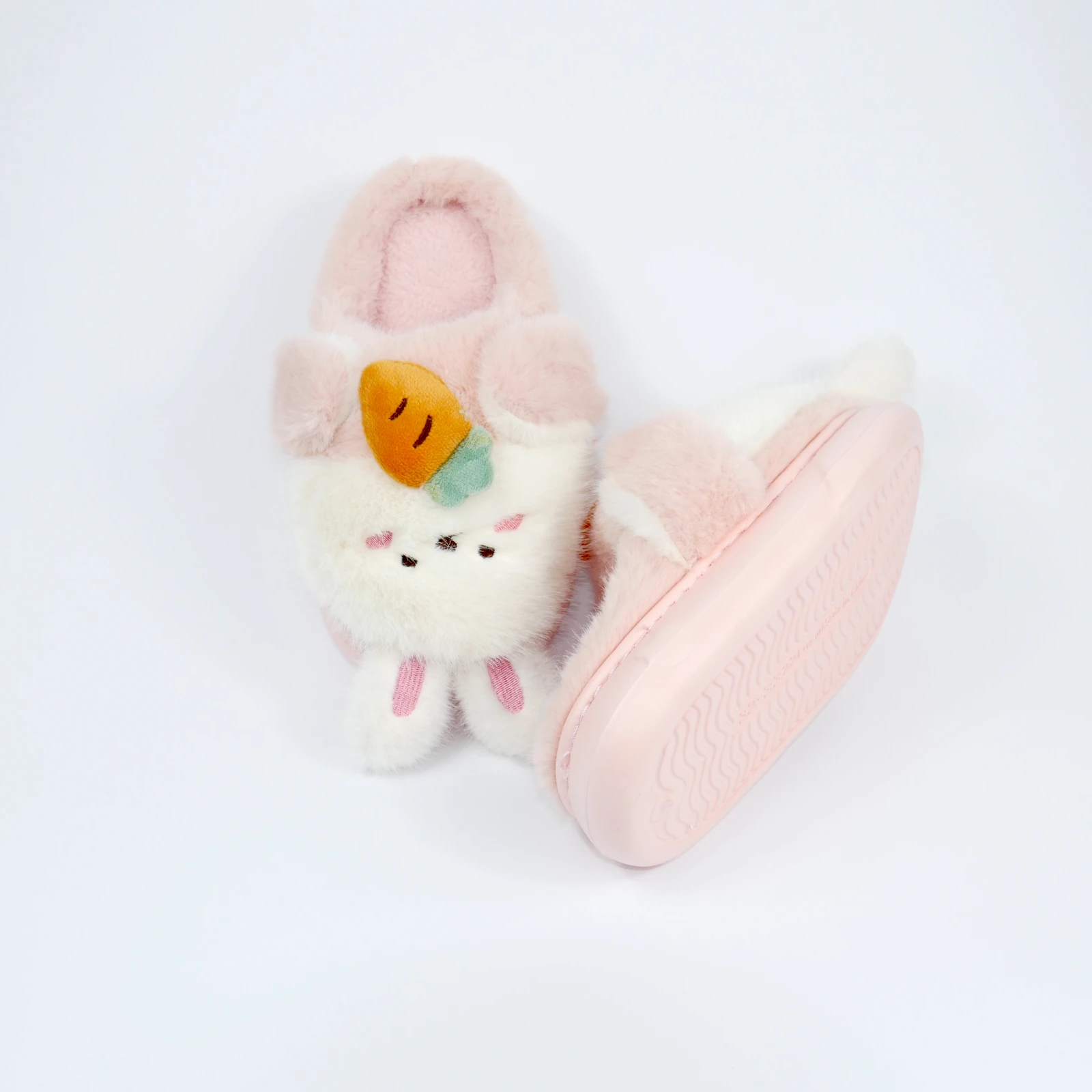Детские комнатные тапочки «Зверята» из эко-меха (Розовый кролик)