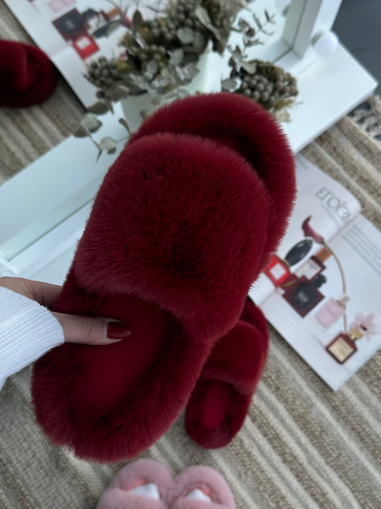 Бордові пухнасті тапочки — стильна розкіш і затишок для вашого дому