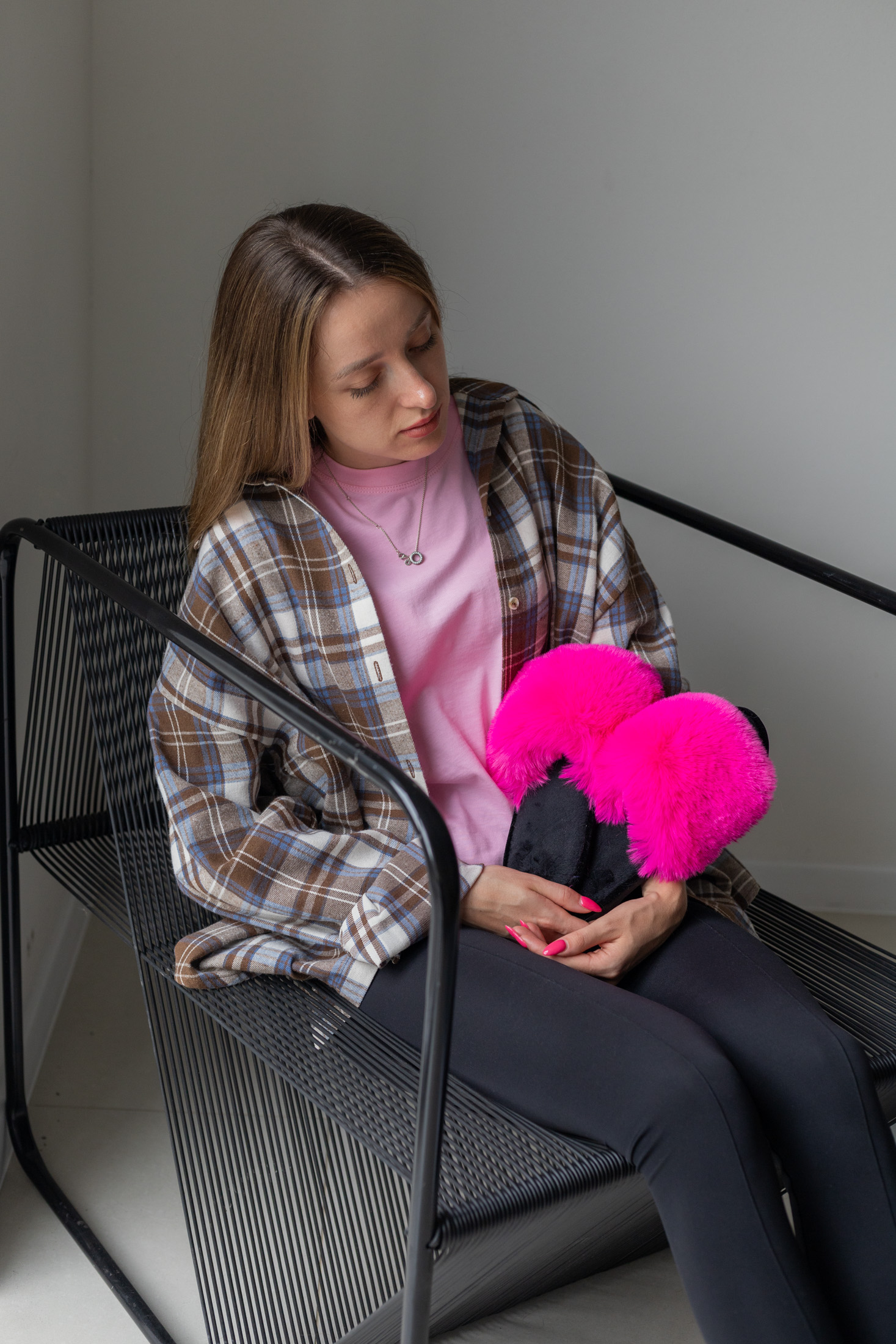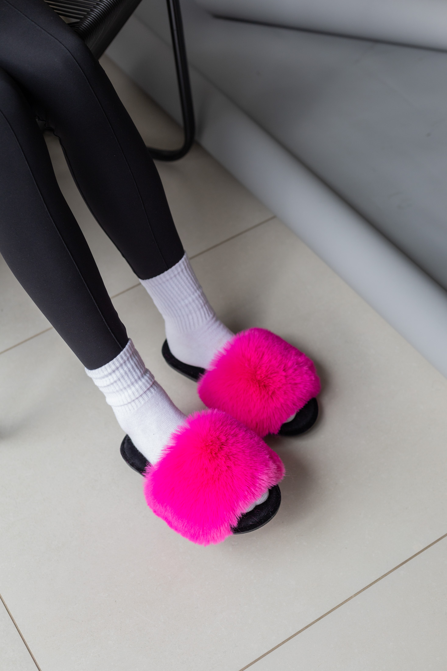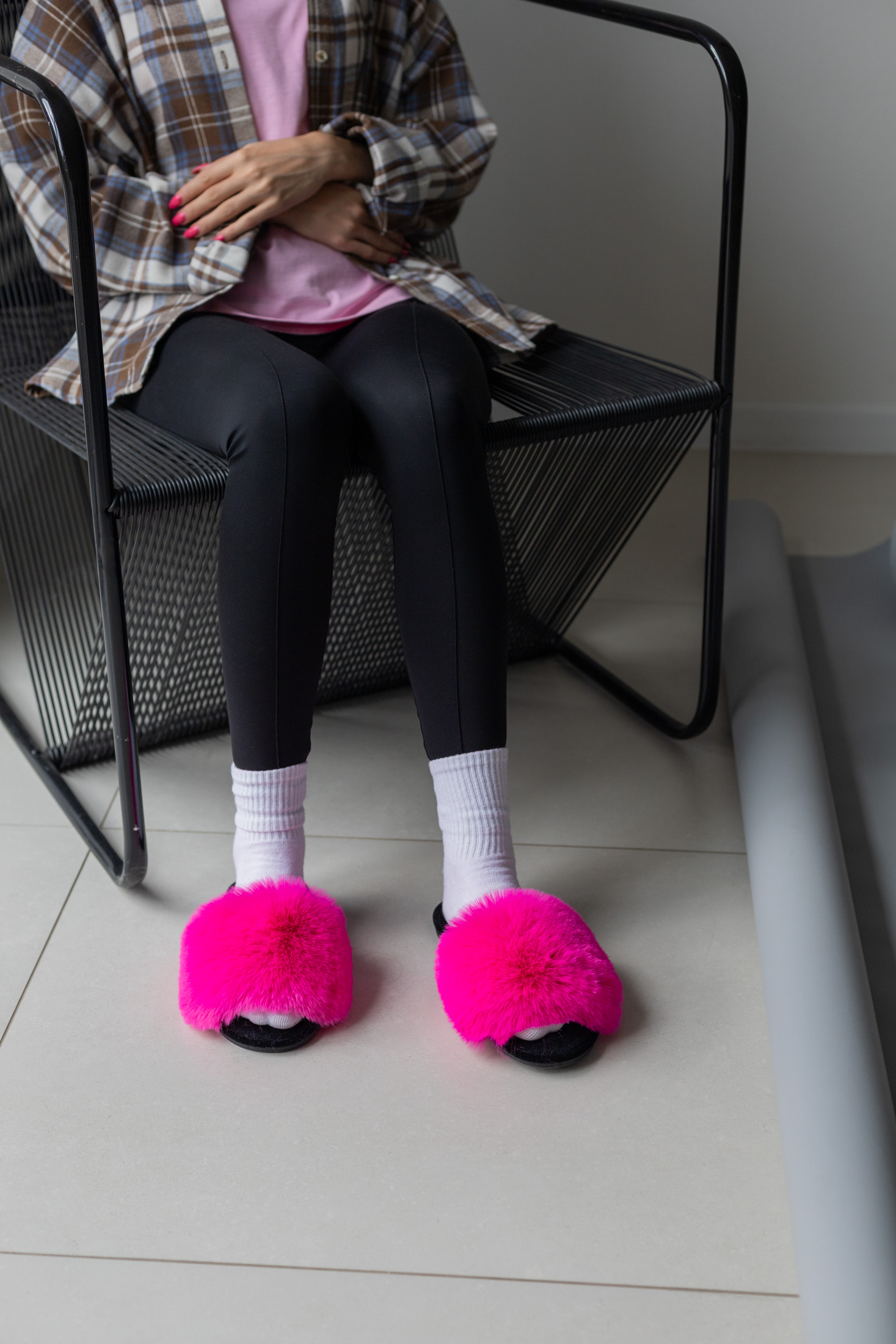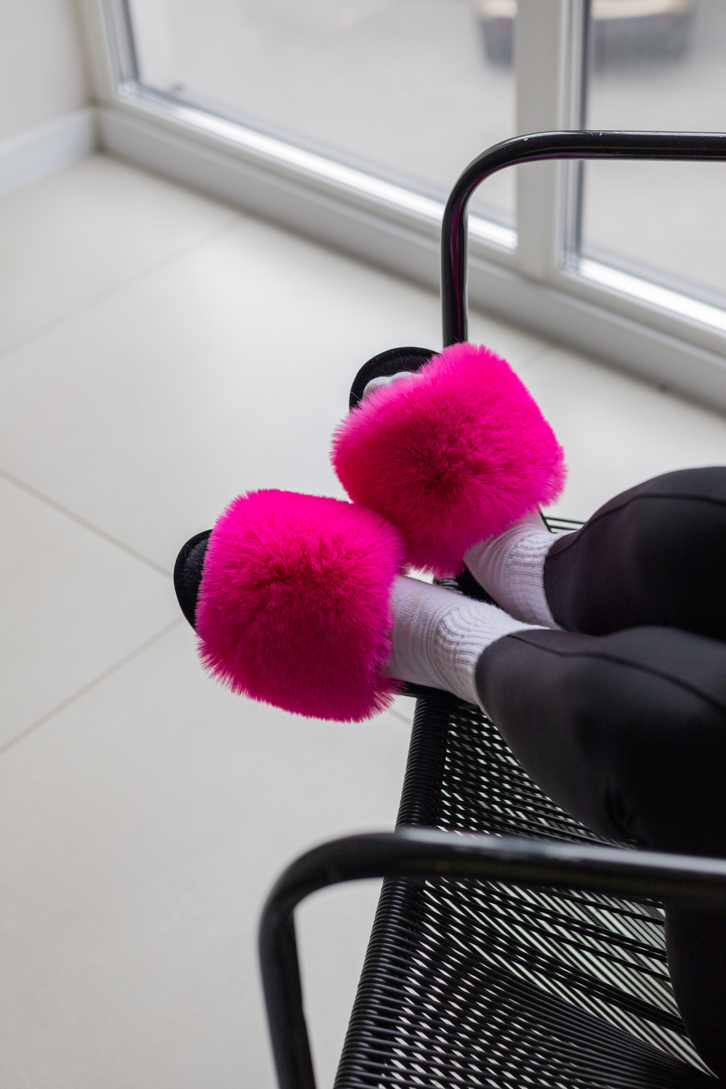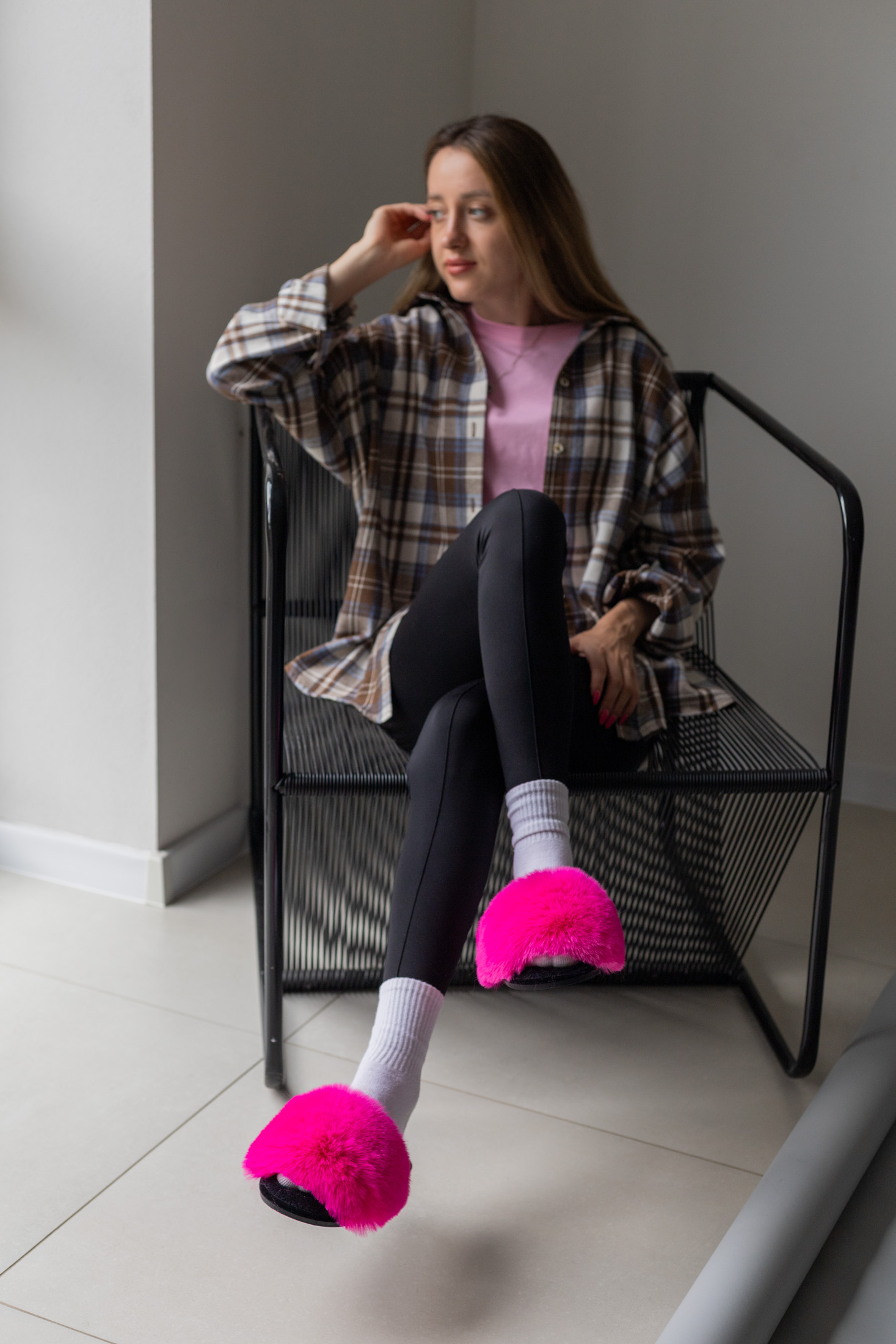 Жіночі домашні капці Halluci з еко-хутра малиново-чорні