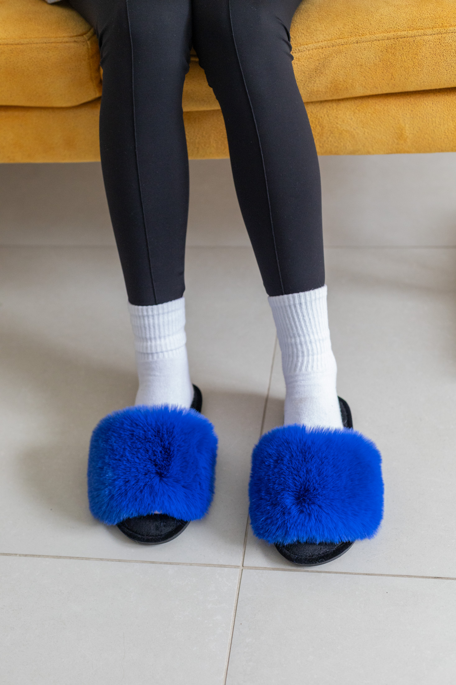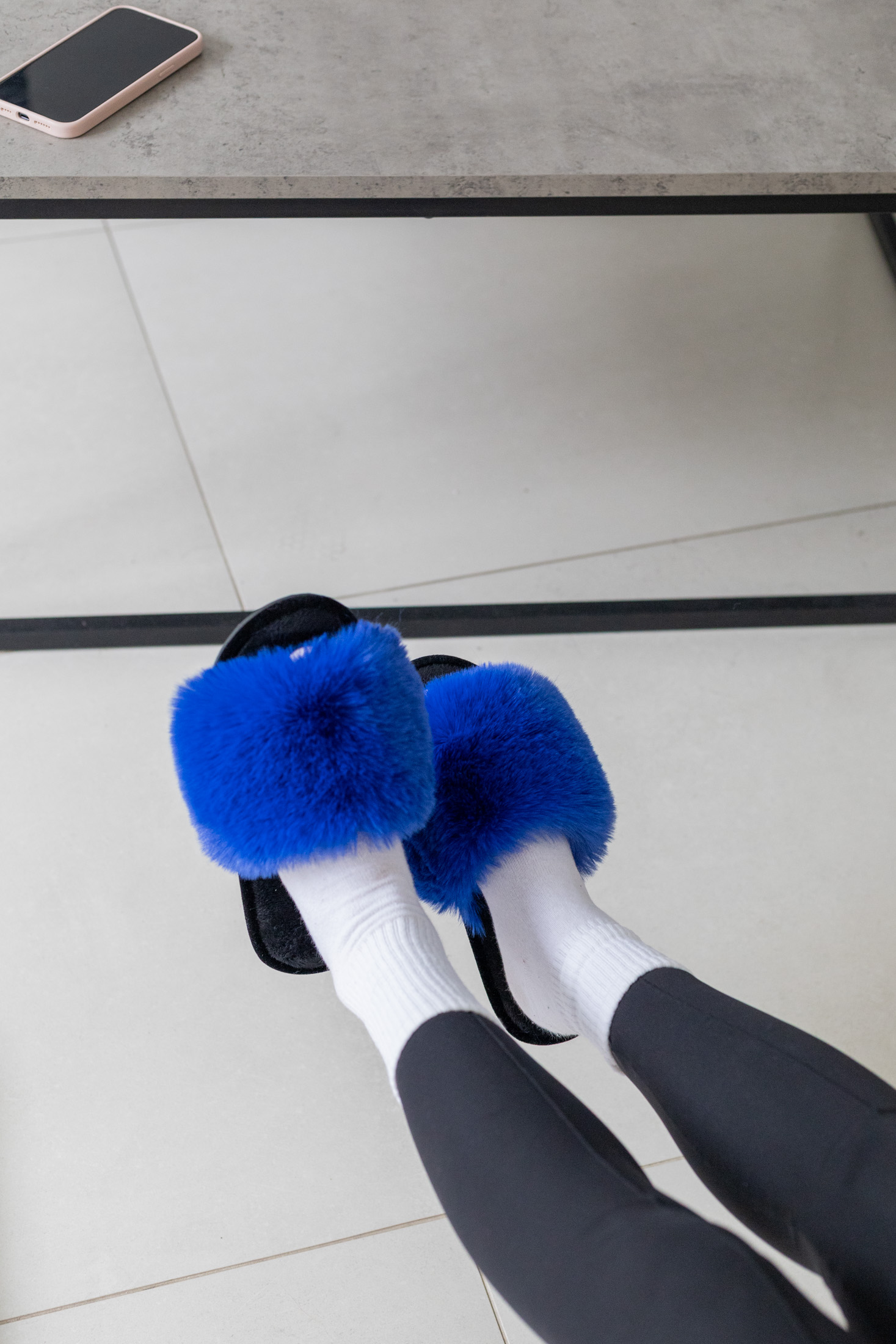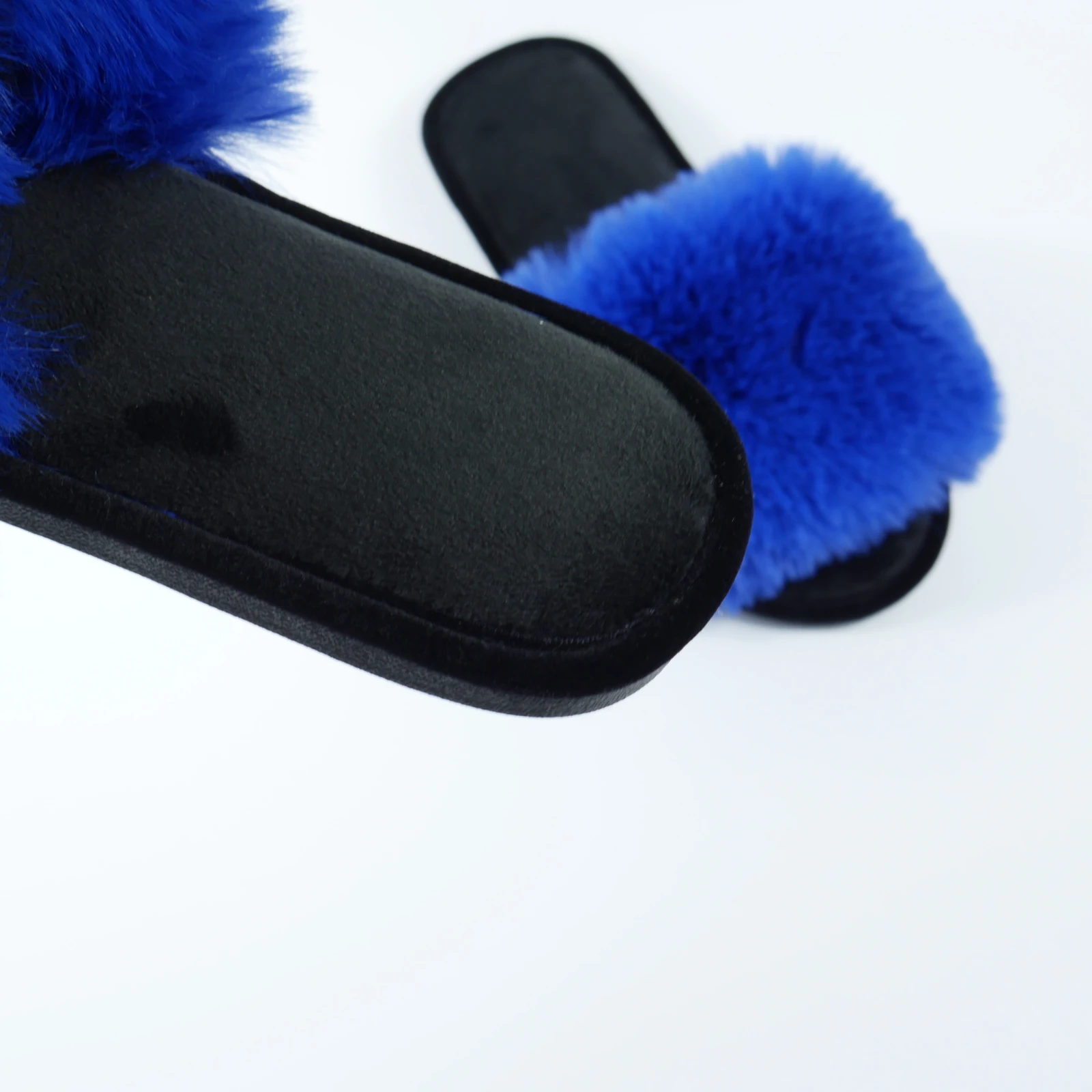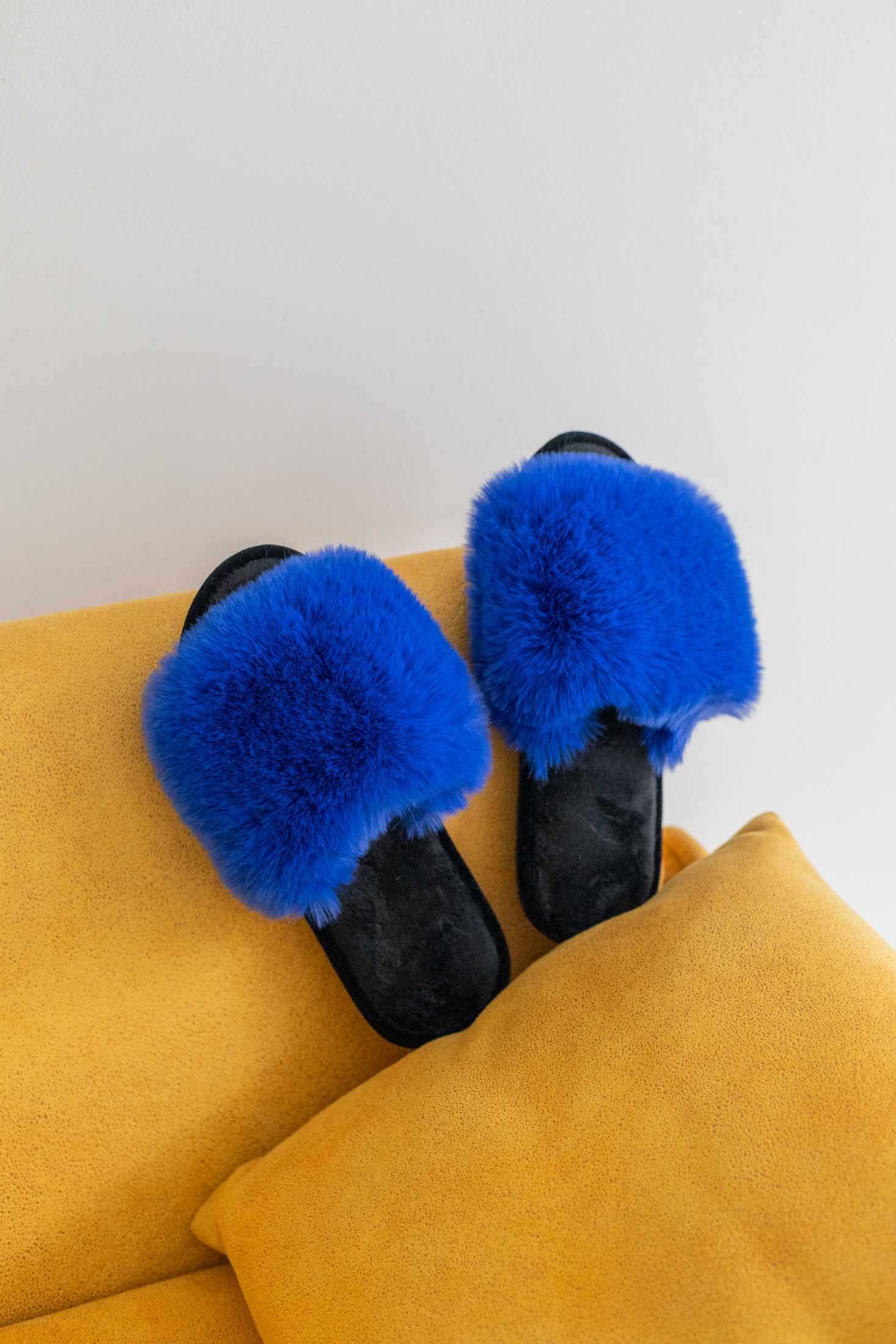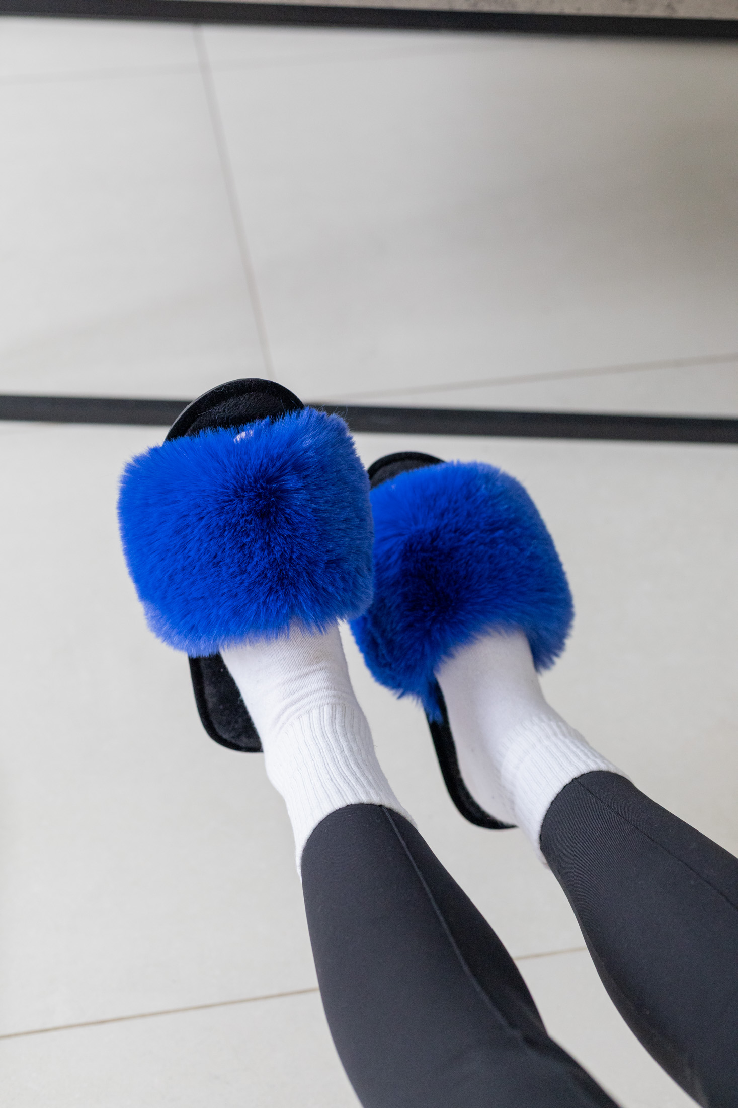 Жіночі домашні капці Halluci з еко-хутра синьо-чорні