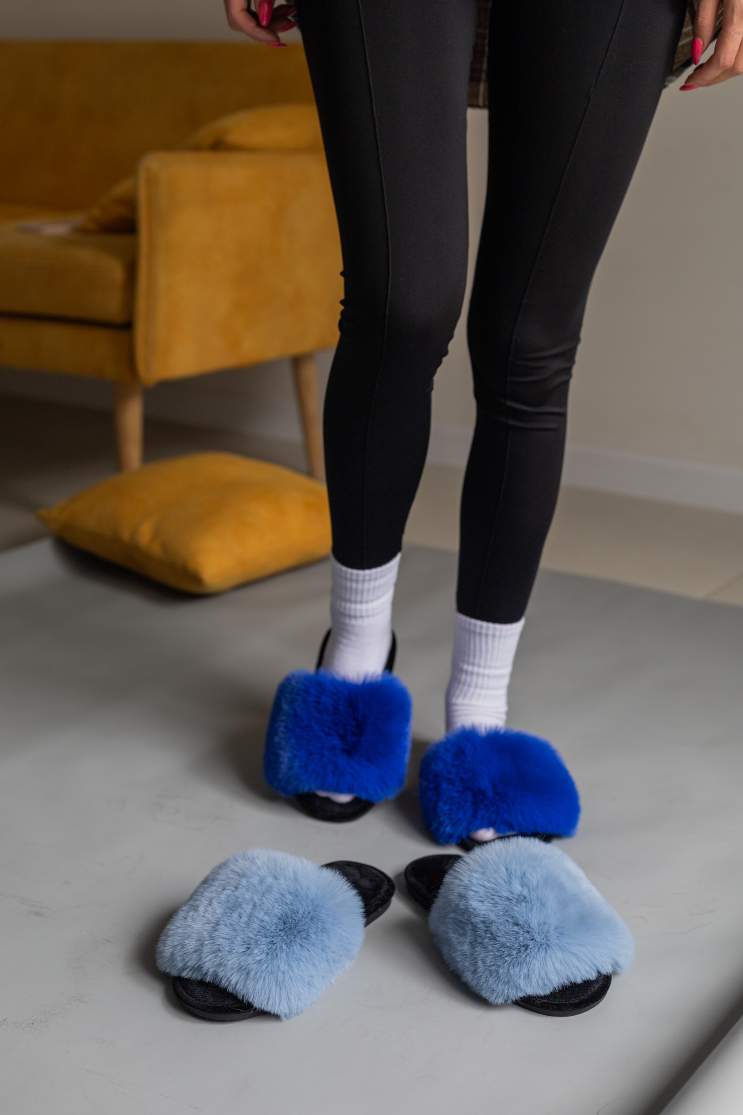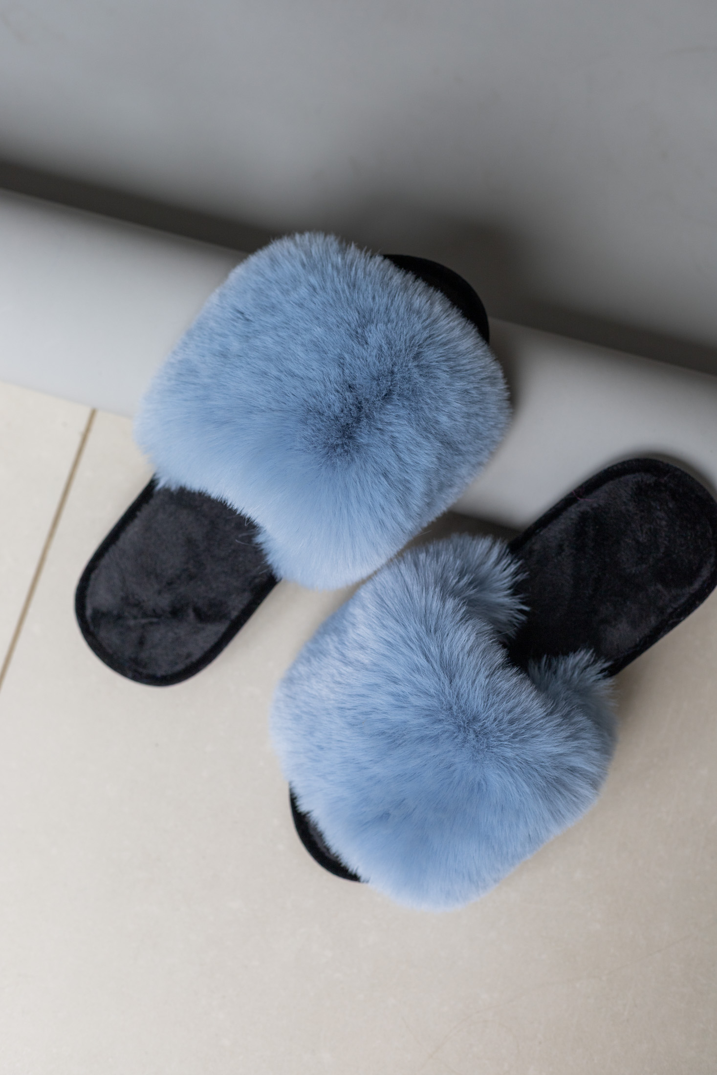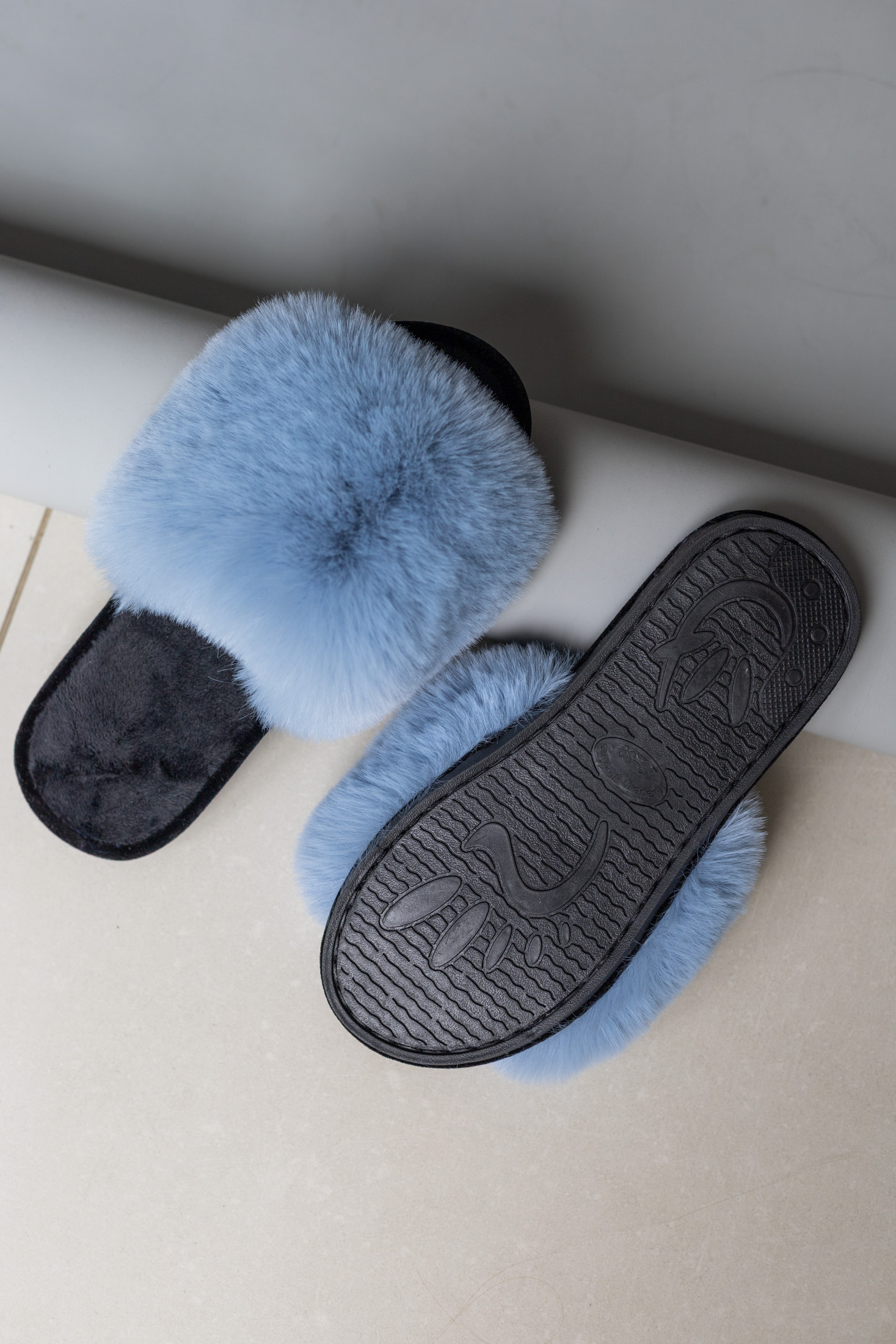 Жіночі домашні капці Halluci з хутра блакитно-чорні