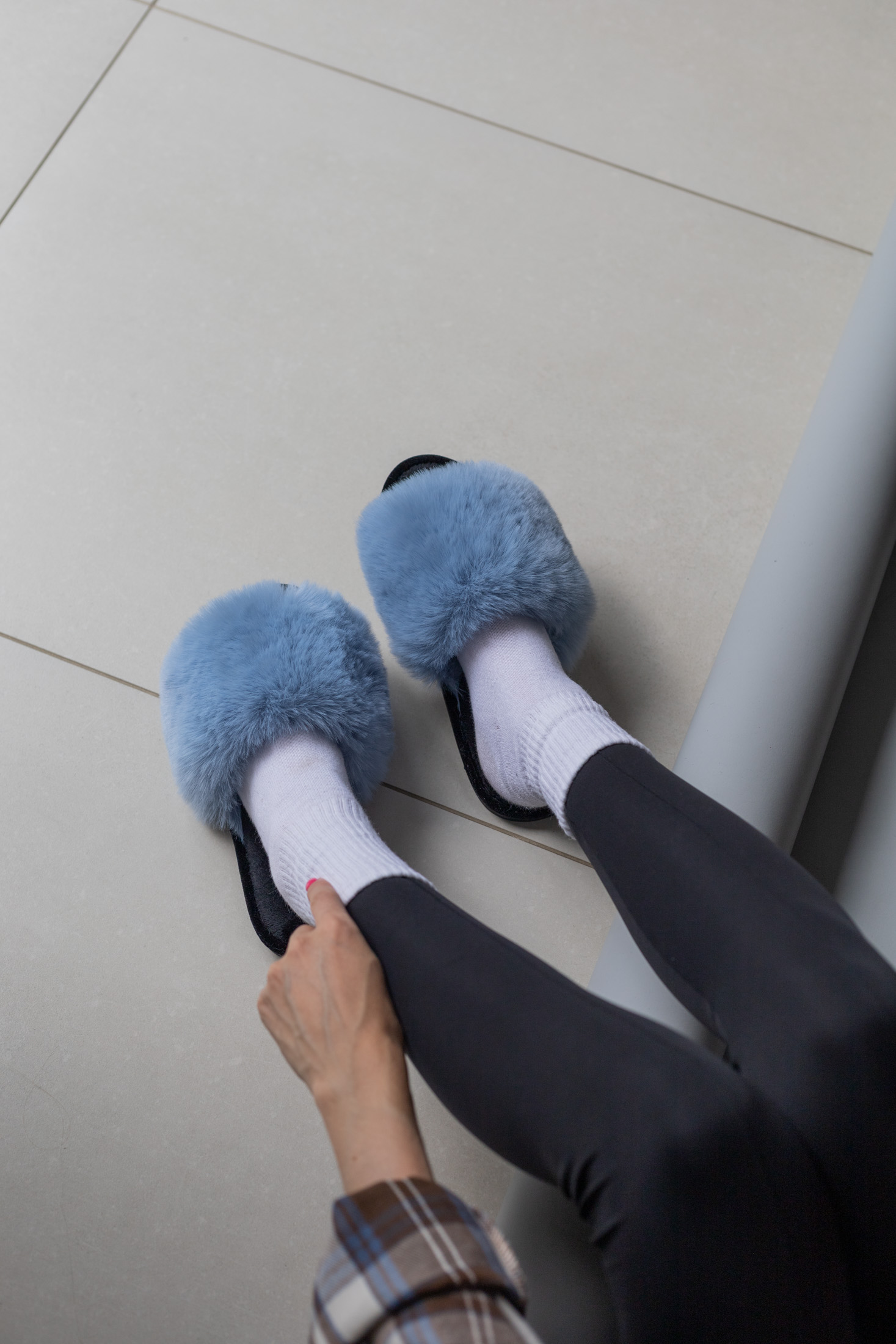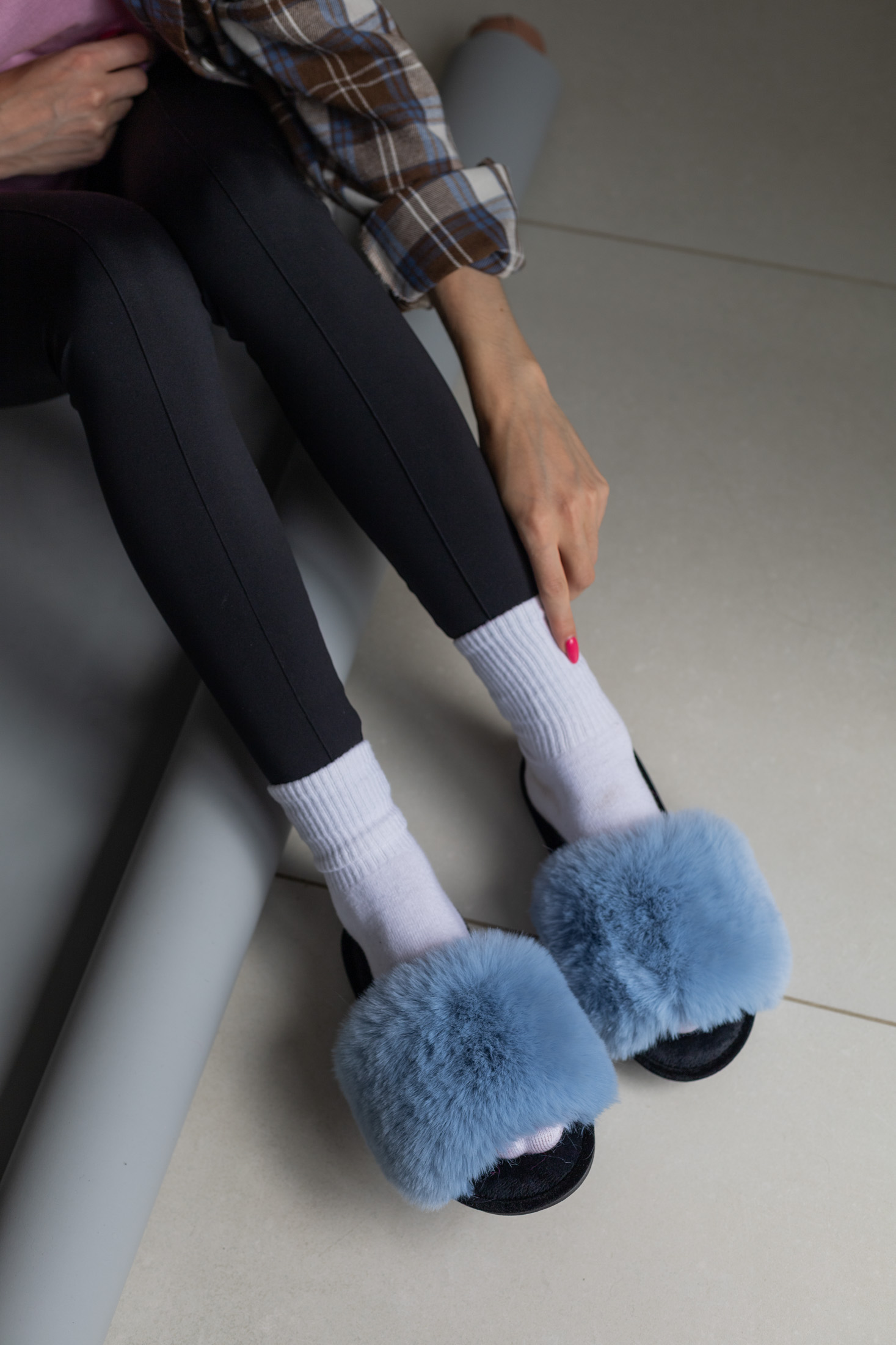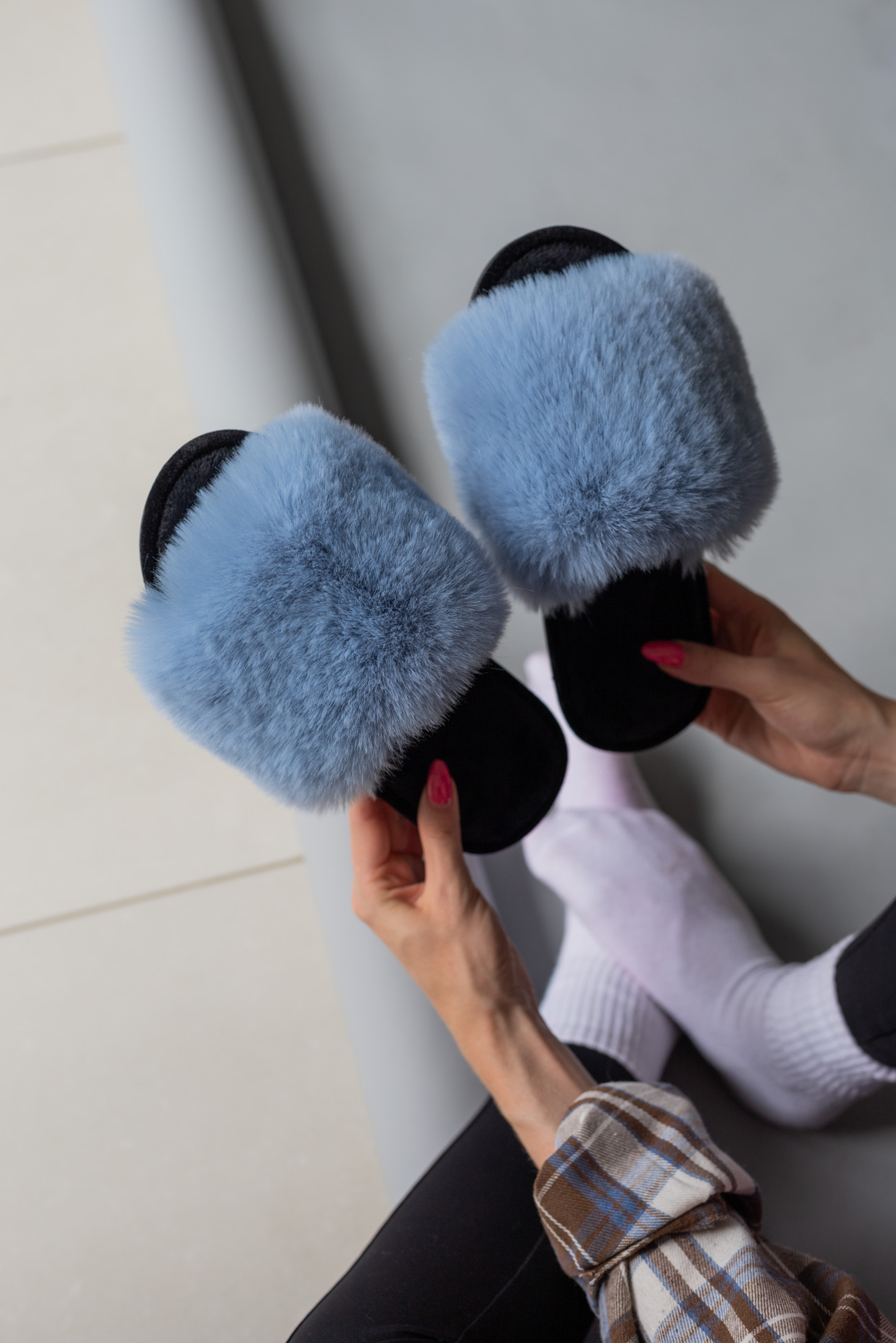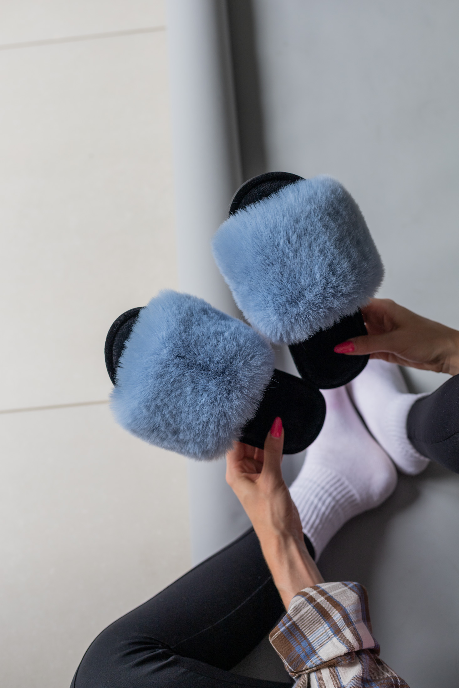 Жіночі домашні капці Halluci з хутра блакитно-чорні