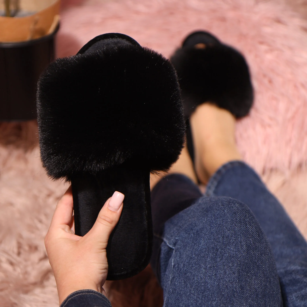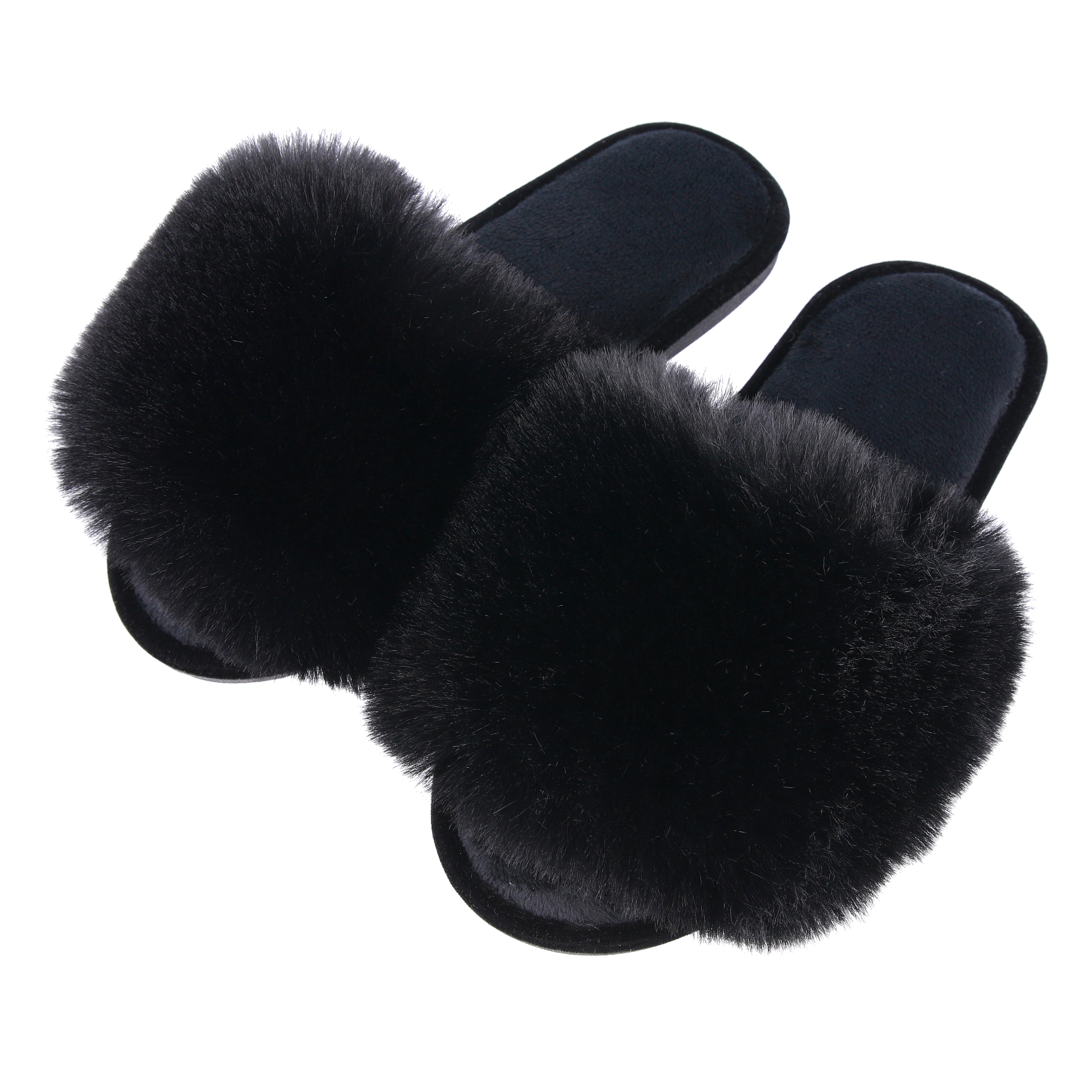 Жіночі домашні капці Halluci з хутра у чорному кольорі