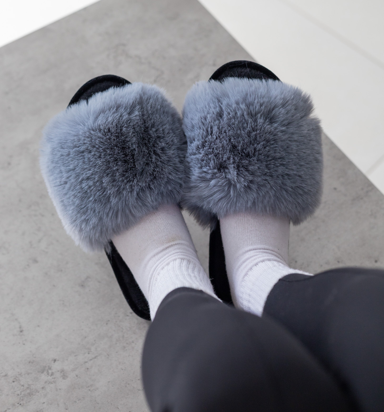 Жіночі домашні капці Halluci з хутра у сіро-чорному кольорі
