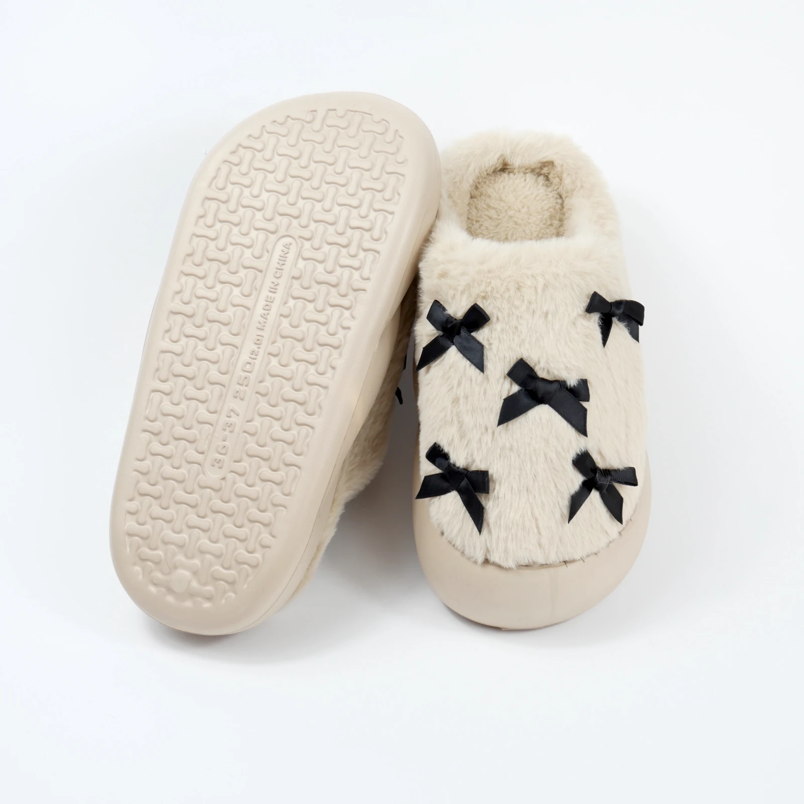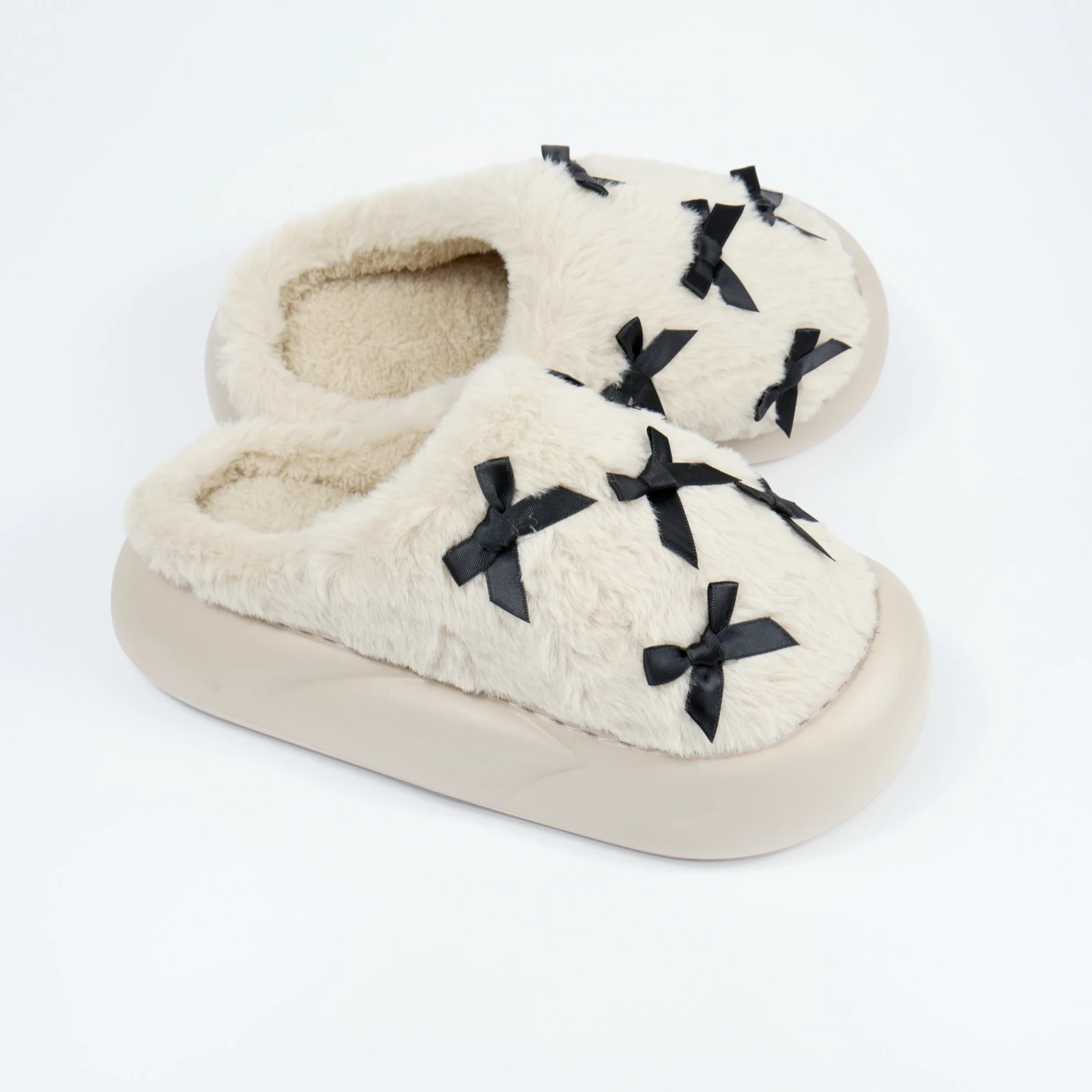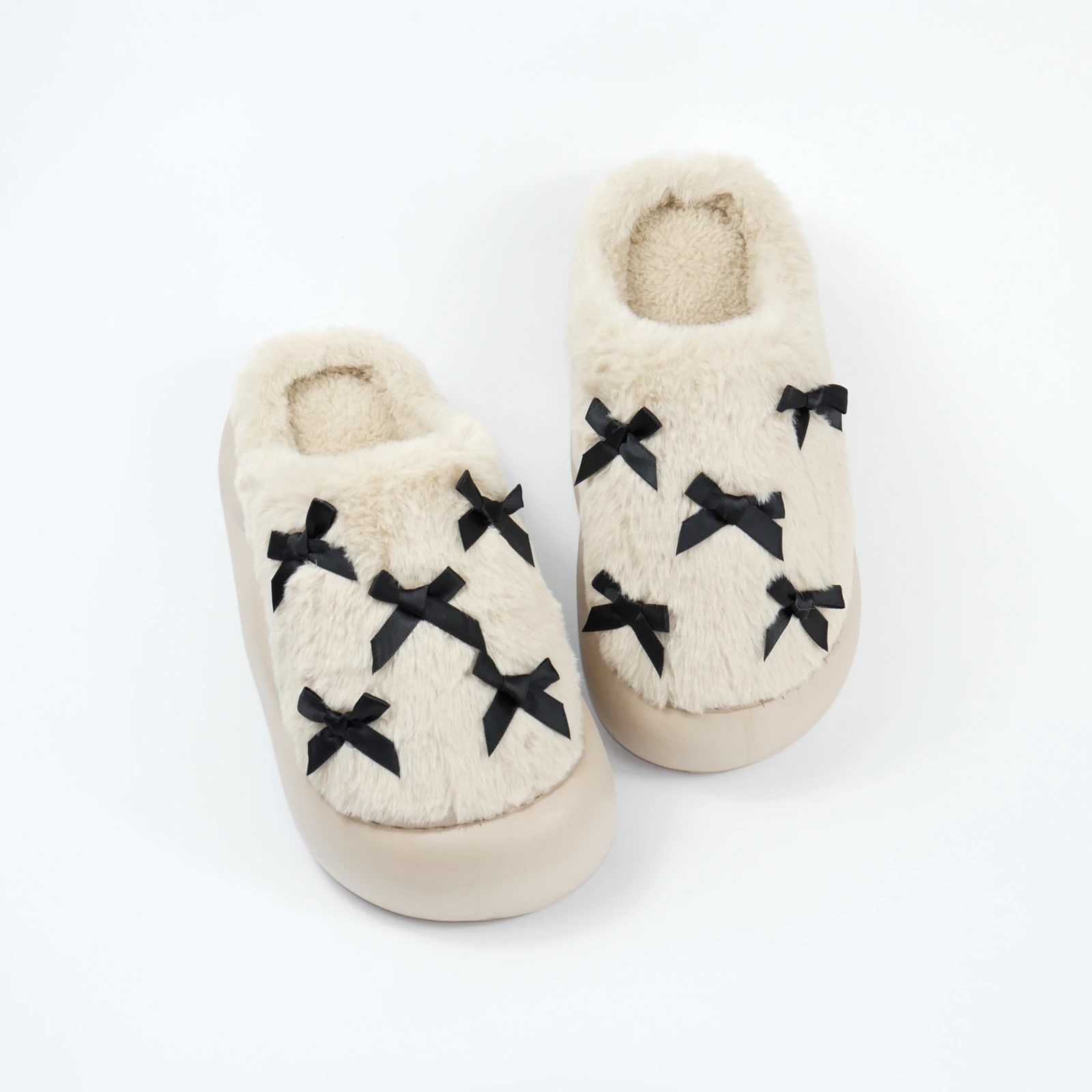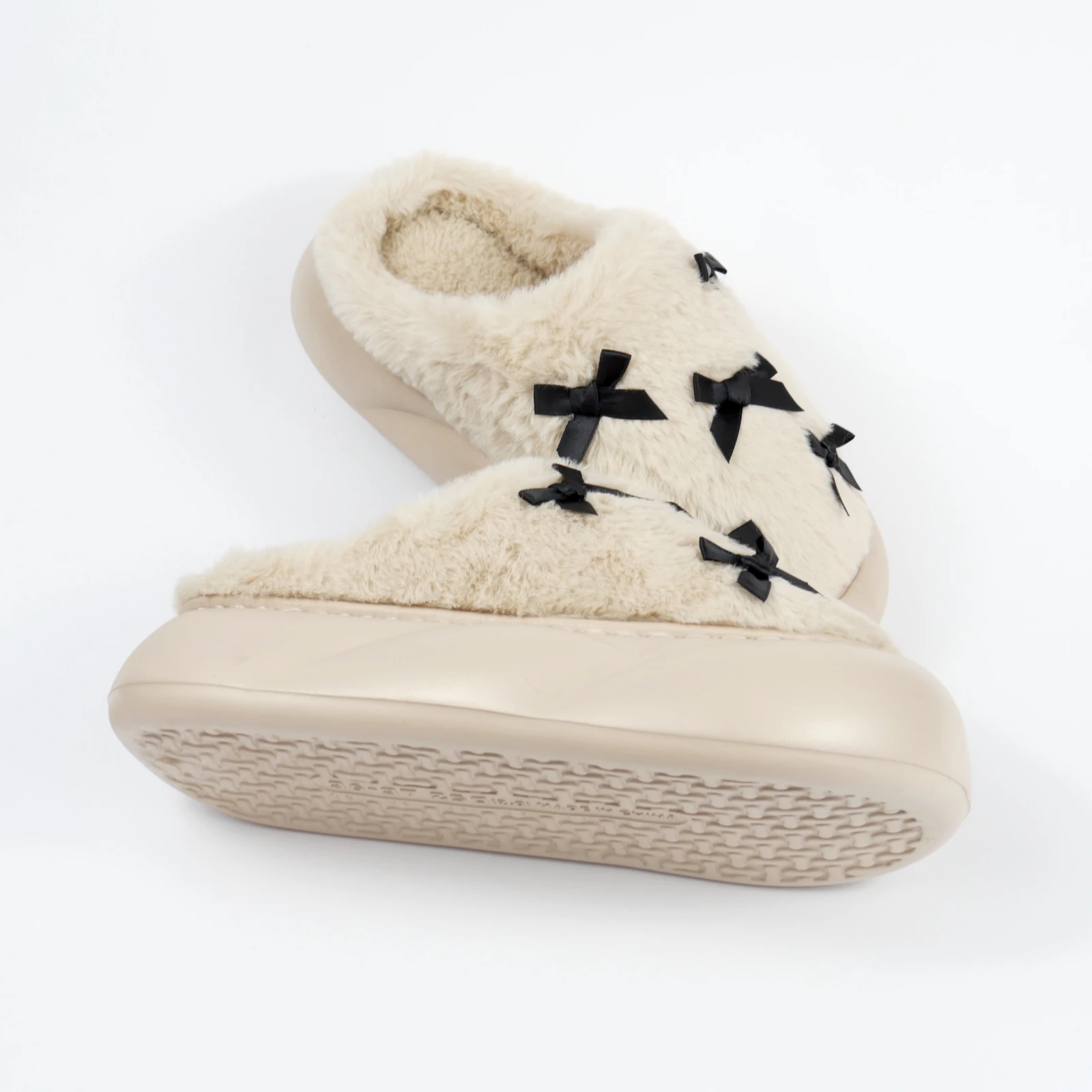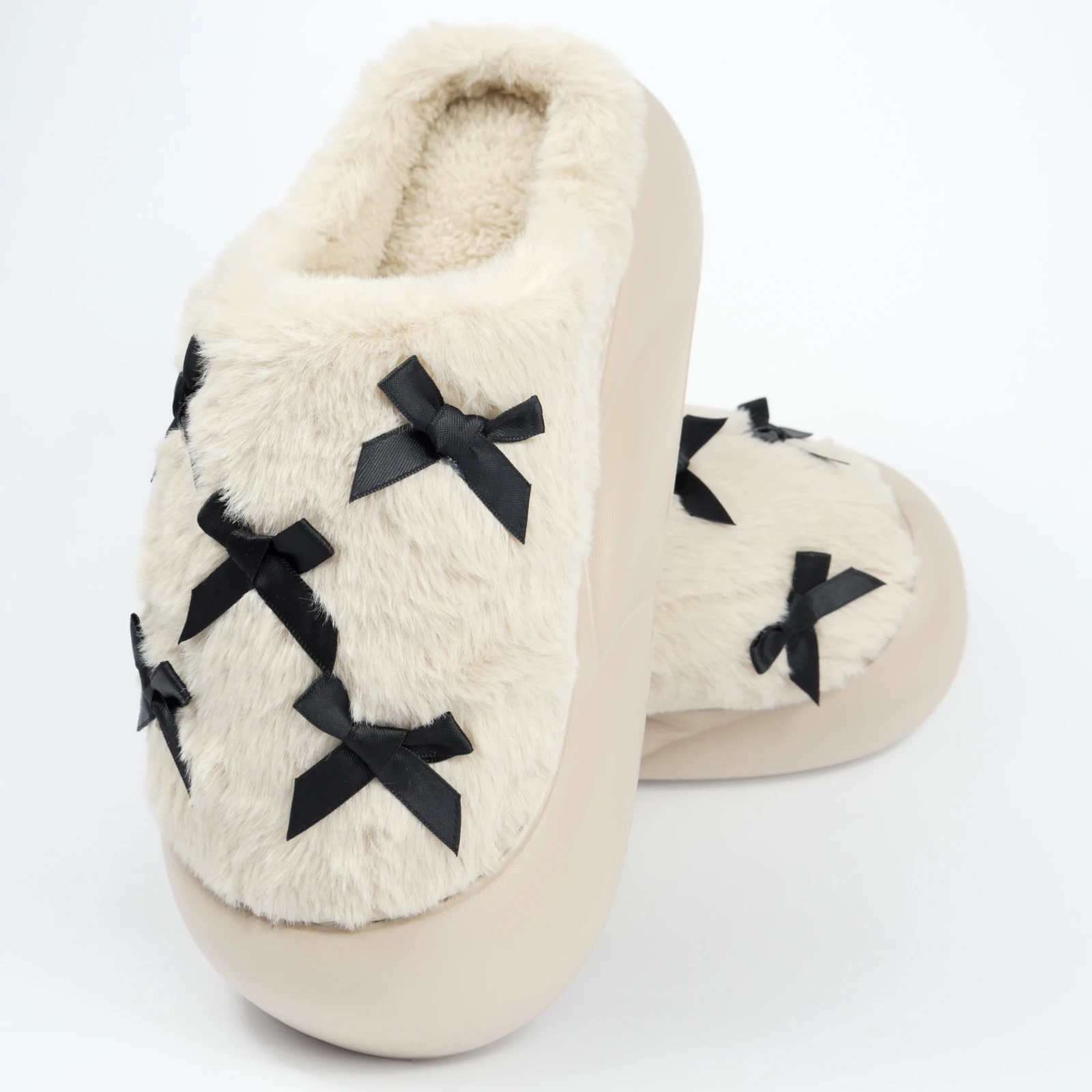 Це також вдалий варіант для тих, хто шукає теплі капці для дому, які виглядають не важко, а навпаки легко й охайно. Бантики не перевантажують модель, а лише додають завершеності.