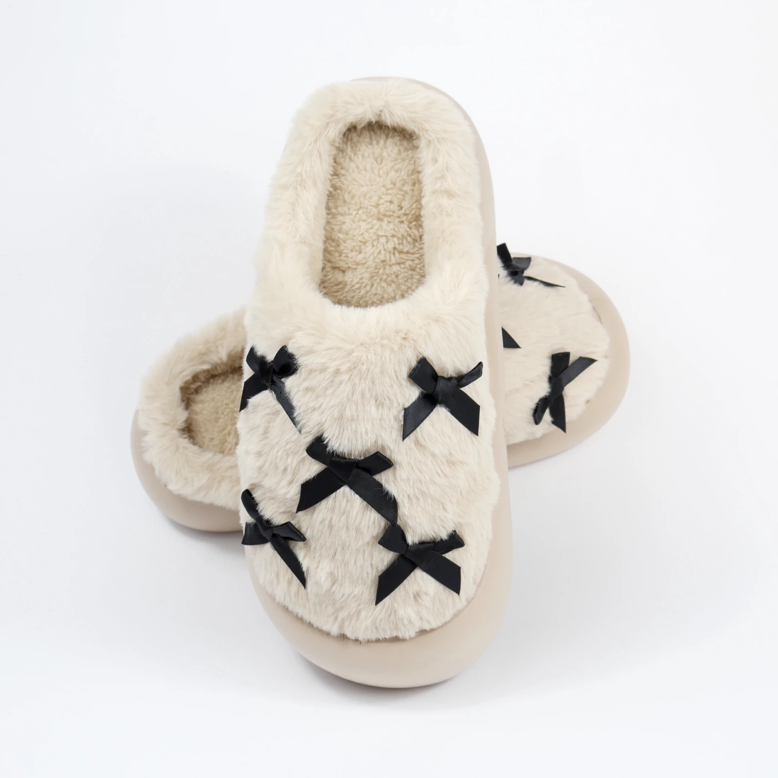 За ключовими запитами бежеві домашні капці, жіночі теплі тапочки, капці для дому жіночі і тапочки з бантиками ця модель має добру релевантність завдяки кольору, декоративній подачі та домашньому сценарію використання.