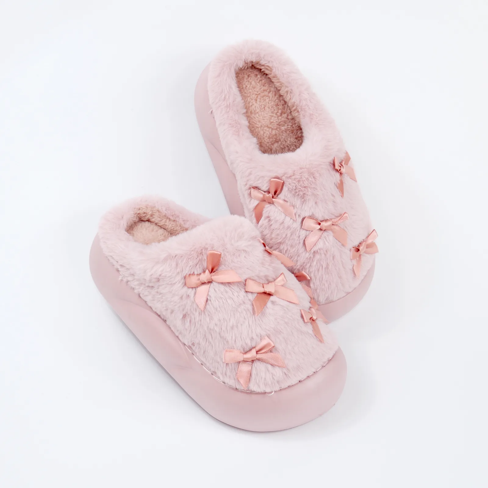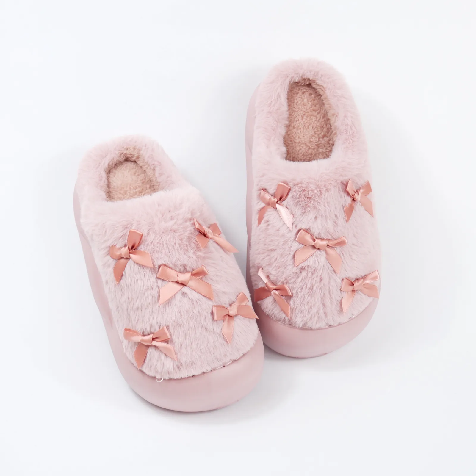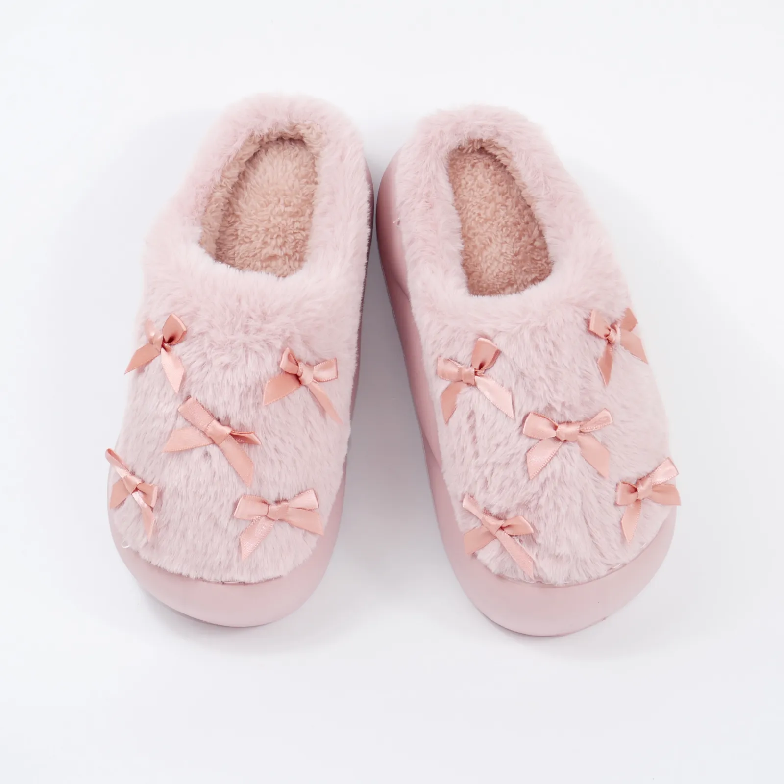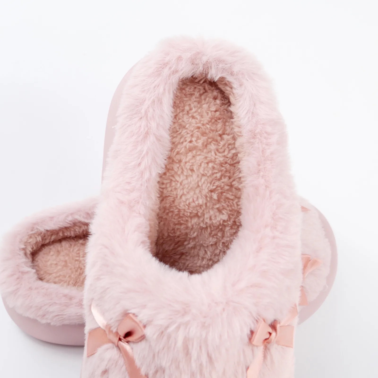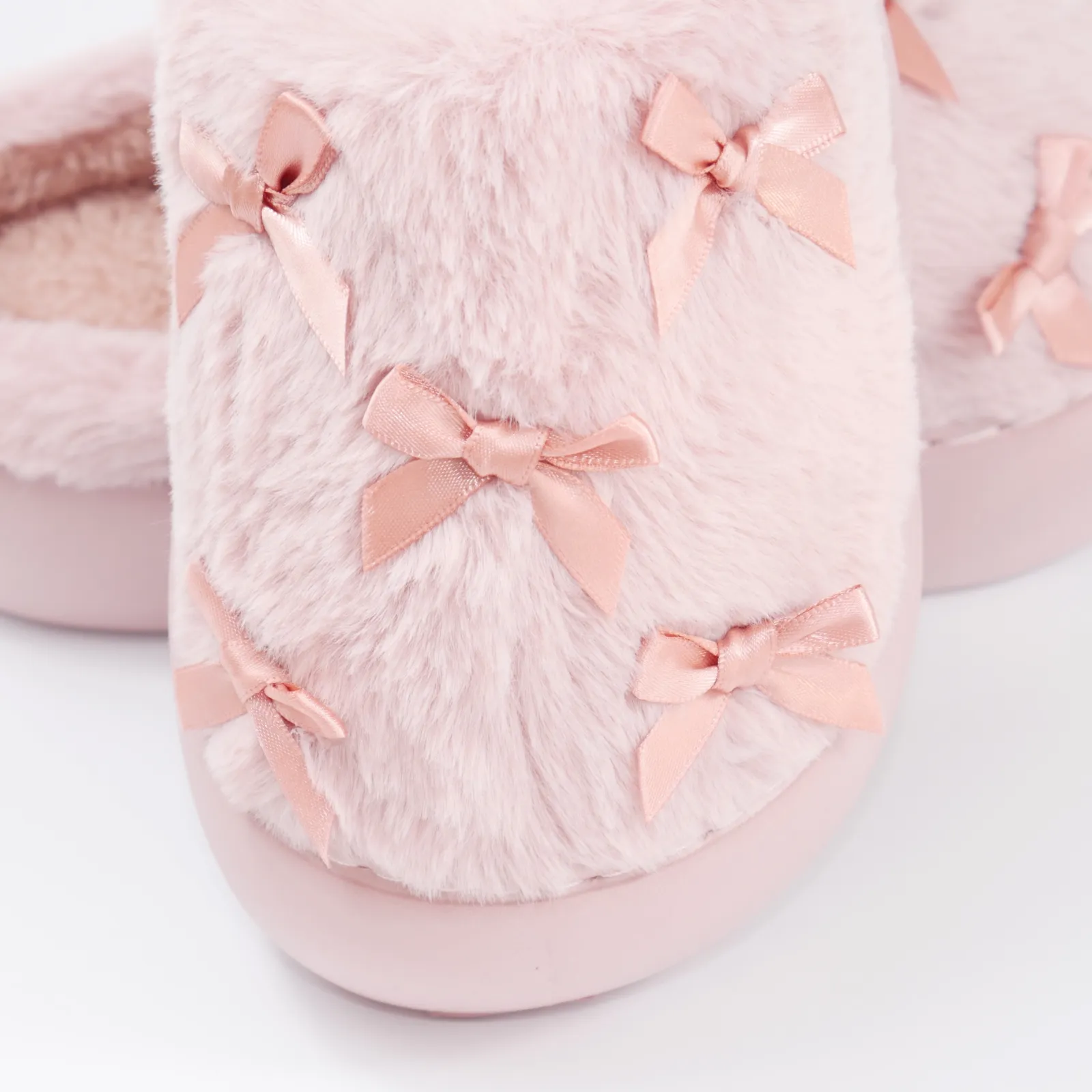 Жіночі домашні капці з бантиками у рожевому кольорі