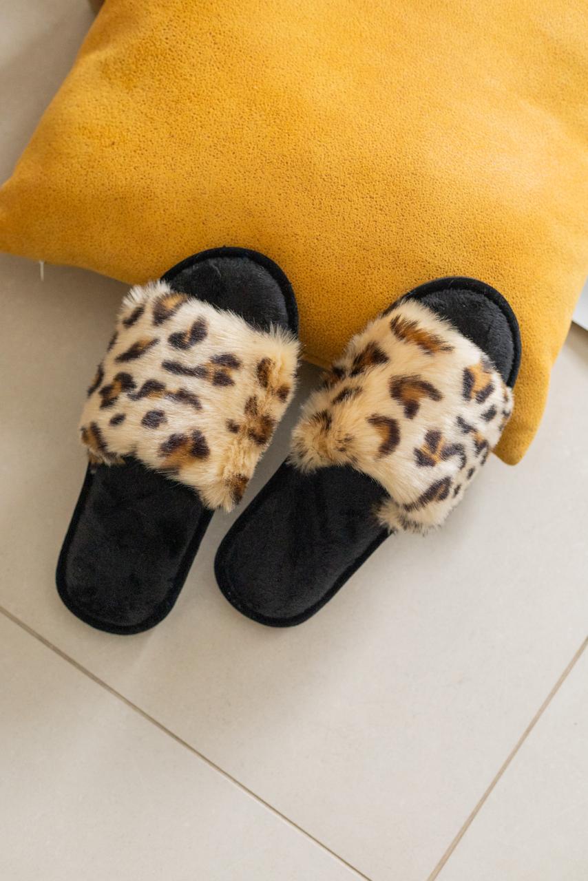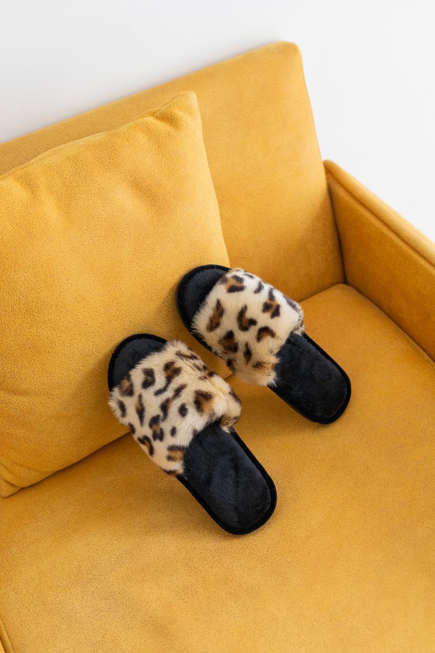 М’які домашні капці Halluci з відкритим носком виконані з пухнастого штучного хутра з ефектним принтом «класичний леопард». Вишуканий анімалістичний дизайн та приємна на дотик текстура поєднують у собі домашній затишок із сучасним стилем.