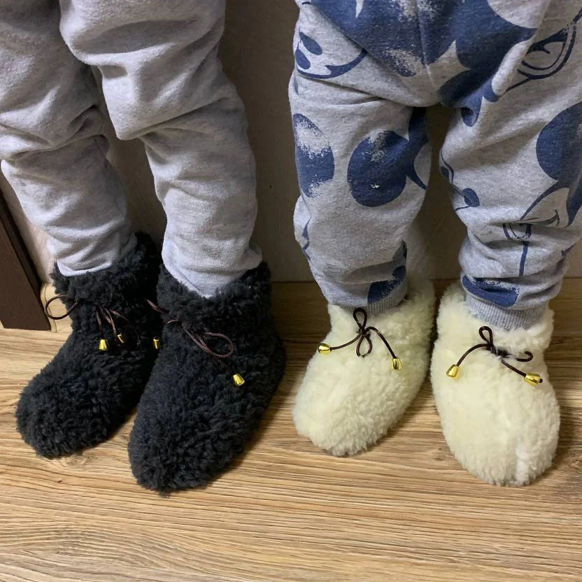 Теплі дитячі чуні з натуральної овчини забезпечать ніжкам максимальний затишок та захист від холоду в зимовий період. Завдяки легкій підошві EVA та зручній шнурівці, вони надійно фіксуються на нозі та дарують комфорт при кожному кроці.