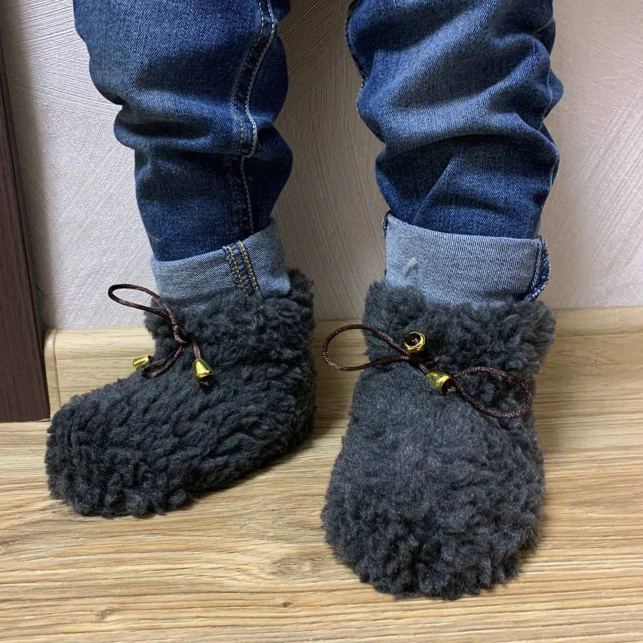 Теплі дитячі чуні з натуральної овчини забезпечать ніжкам максимальний затишок та захист від холоду в зимовий період. Завдяки легкій підошві EVA та зручній шнурівці, вони надійно фіксуються на нозі та дарують комфорт при кожному кроці.