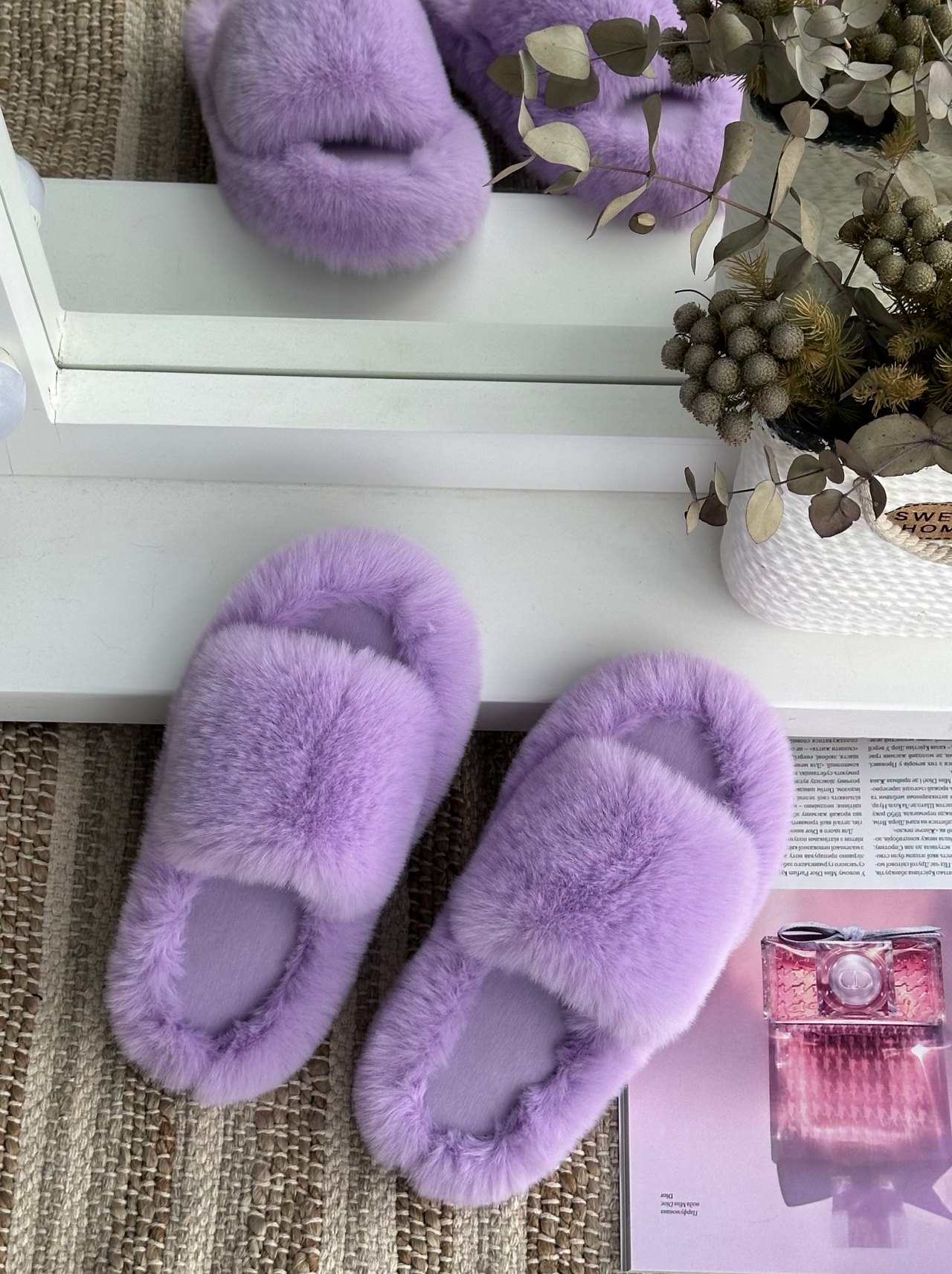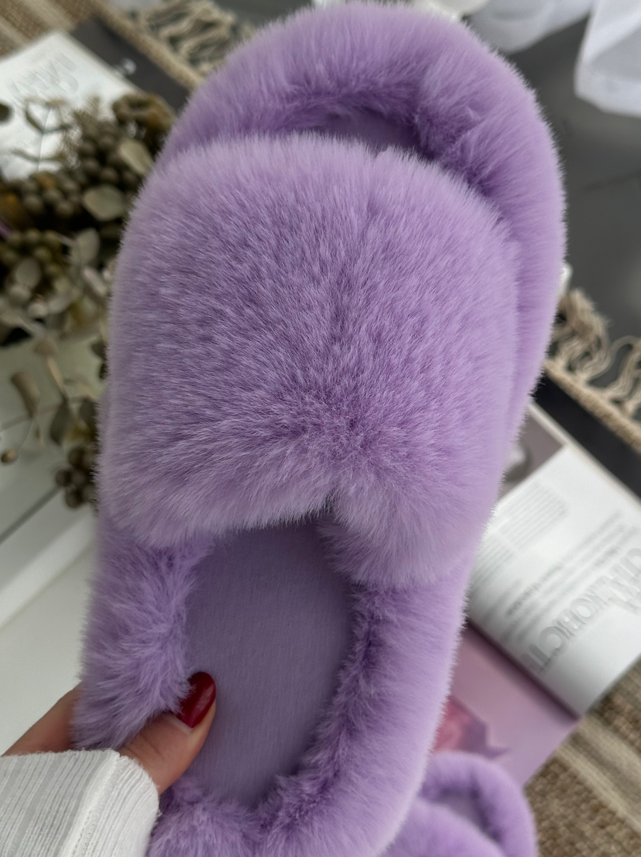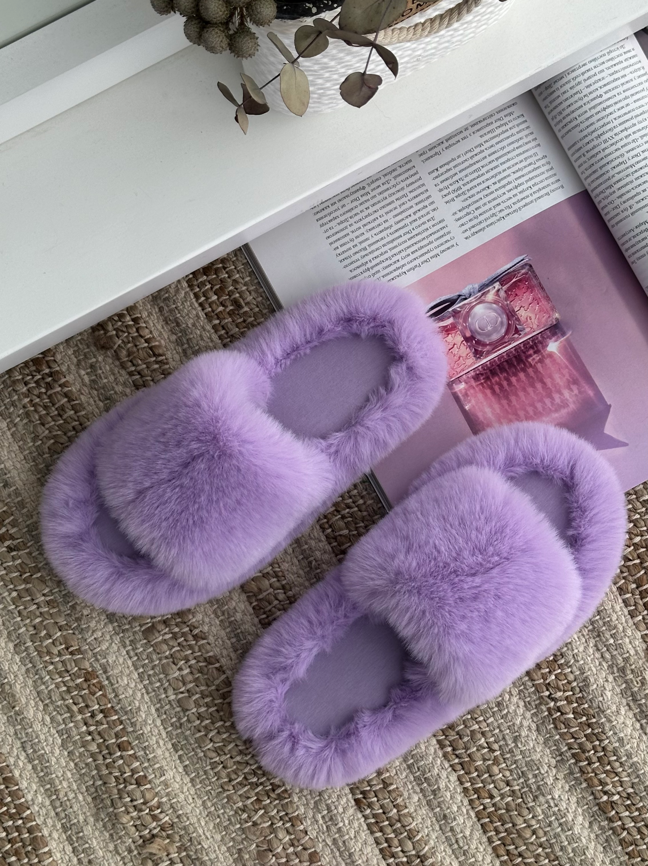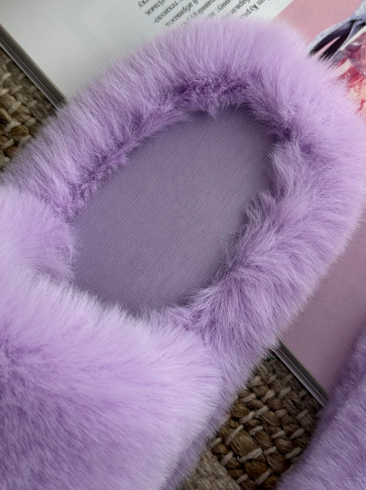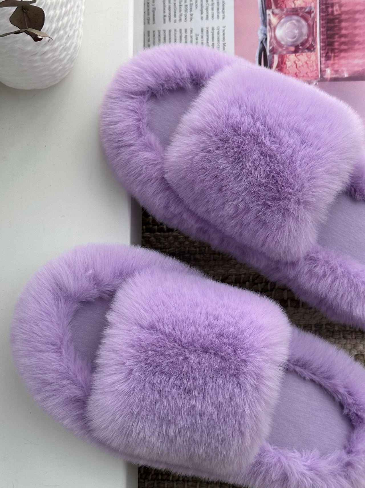Трендові жіночі тапки Luxury з еко-хутра на платформі в Фіолетовому кольорі