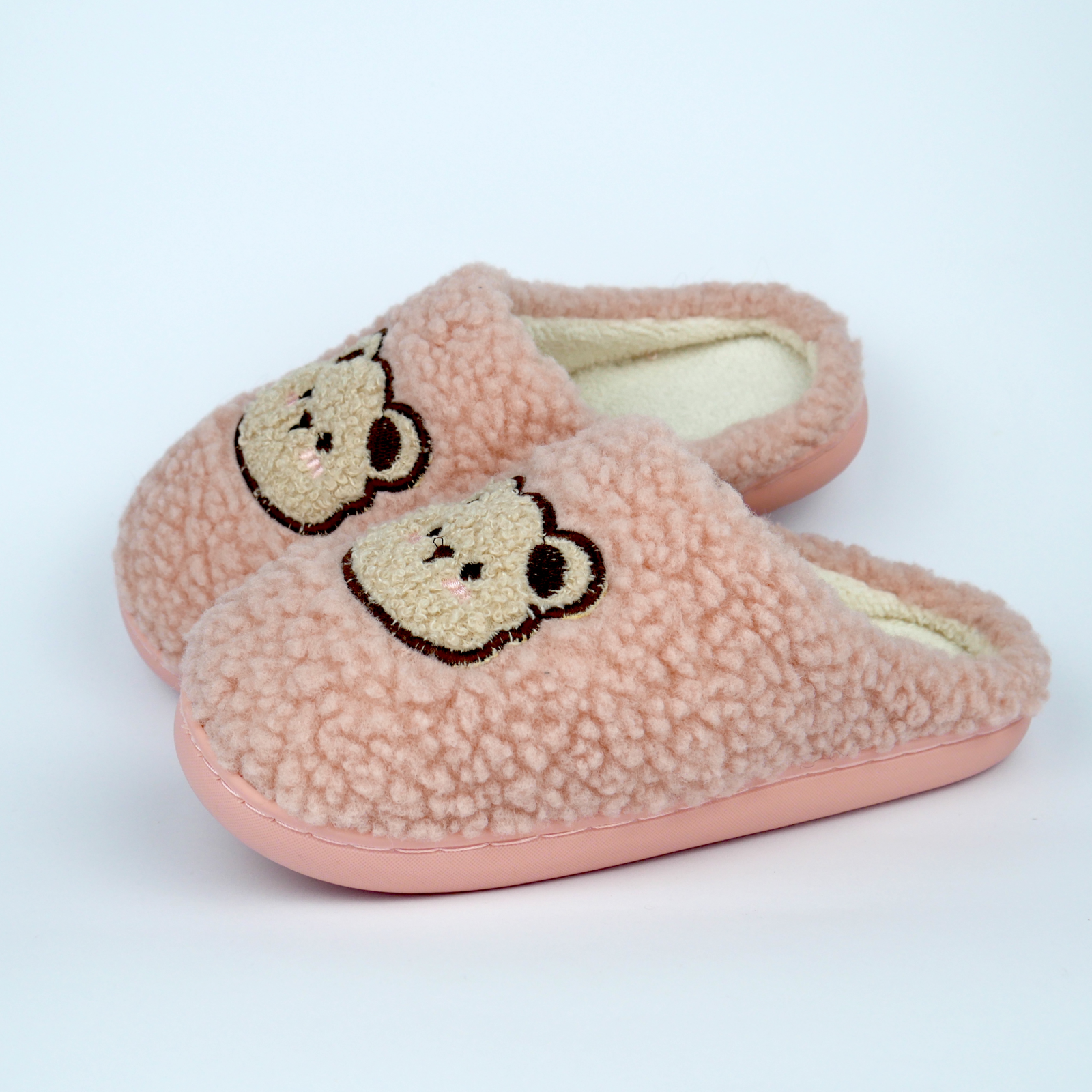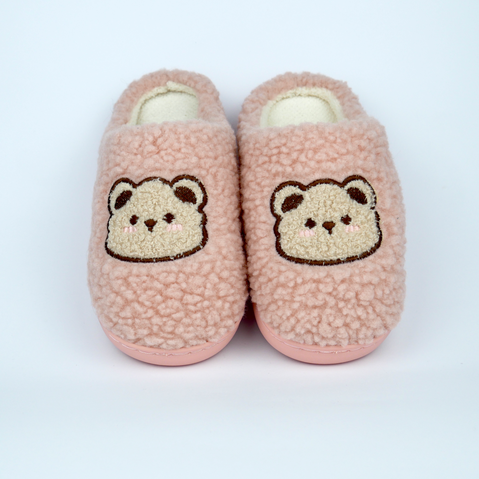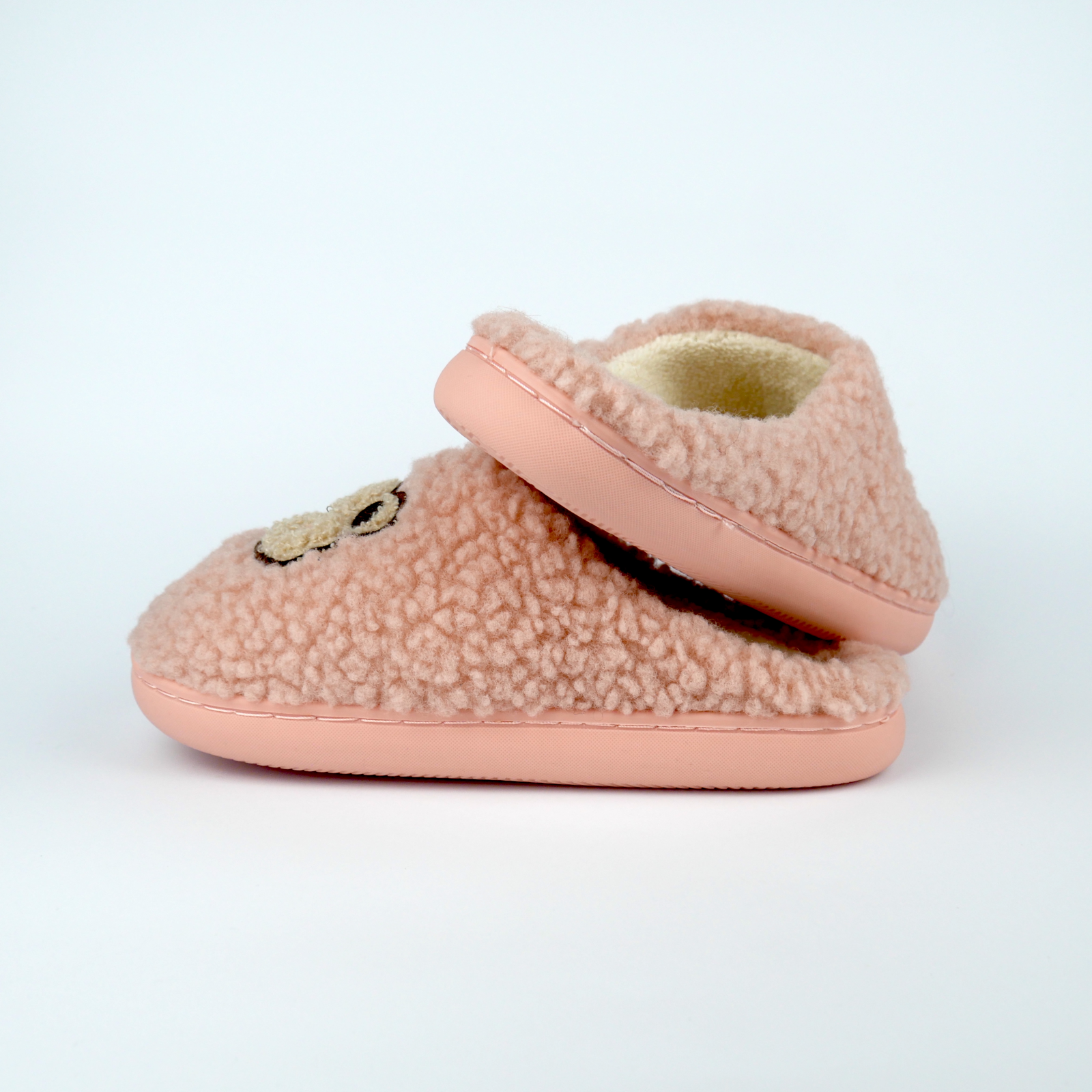 Це м’які закриті тапочки ніжно-рожевого кольору з плюшевого матеріалу. Усередині мають теплу підкладку для комфорту, а спереду прикрашені милим зображенням ведмедика. Ідеальні для дому в холодну пору року.