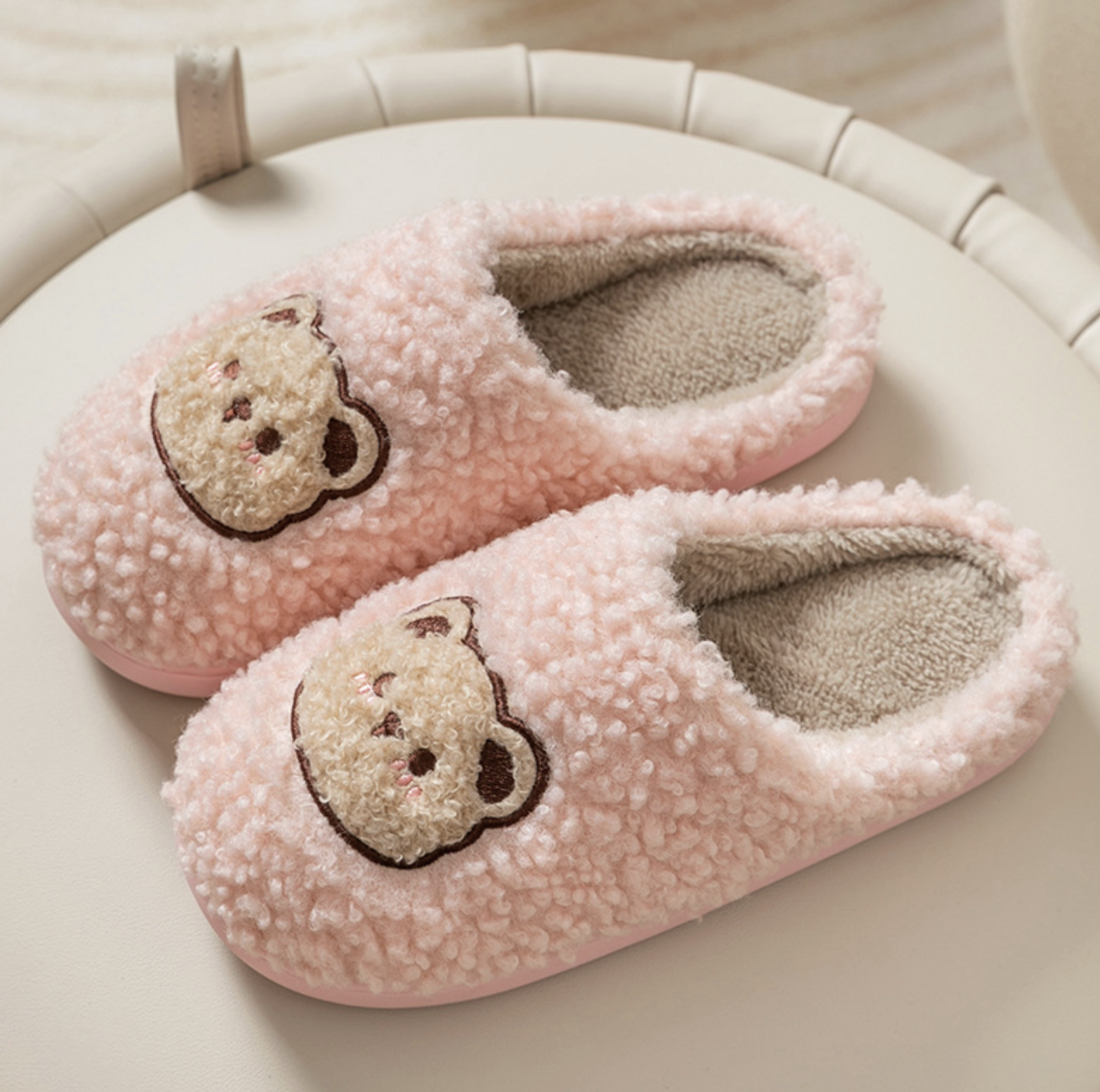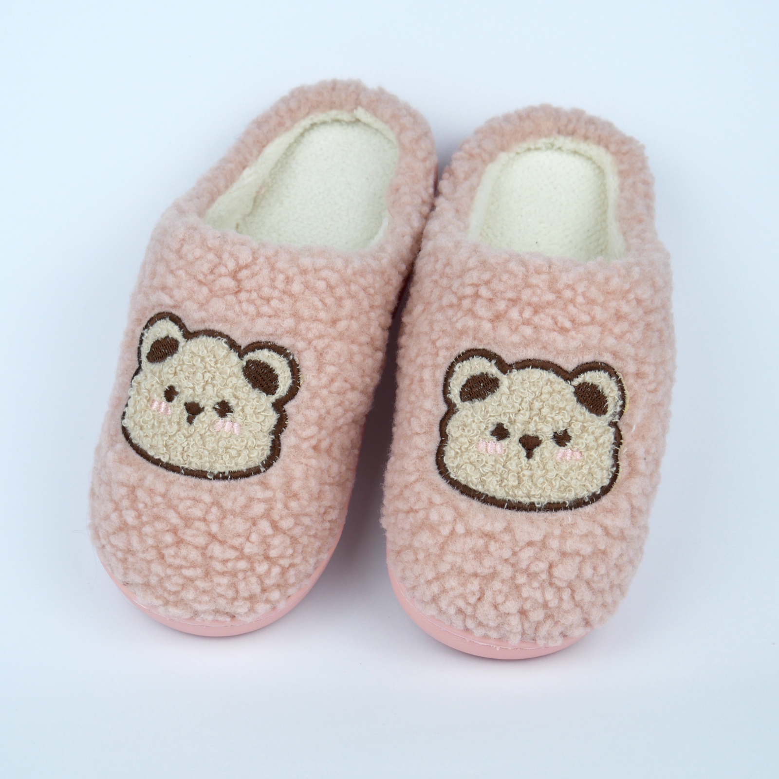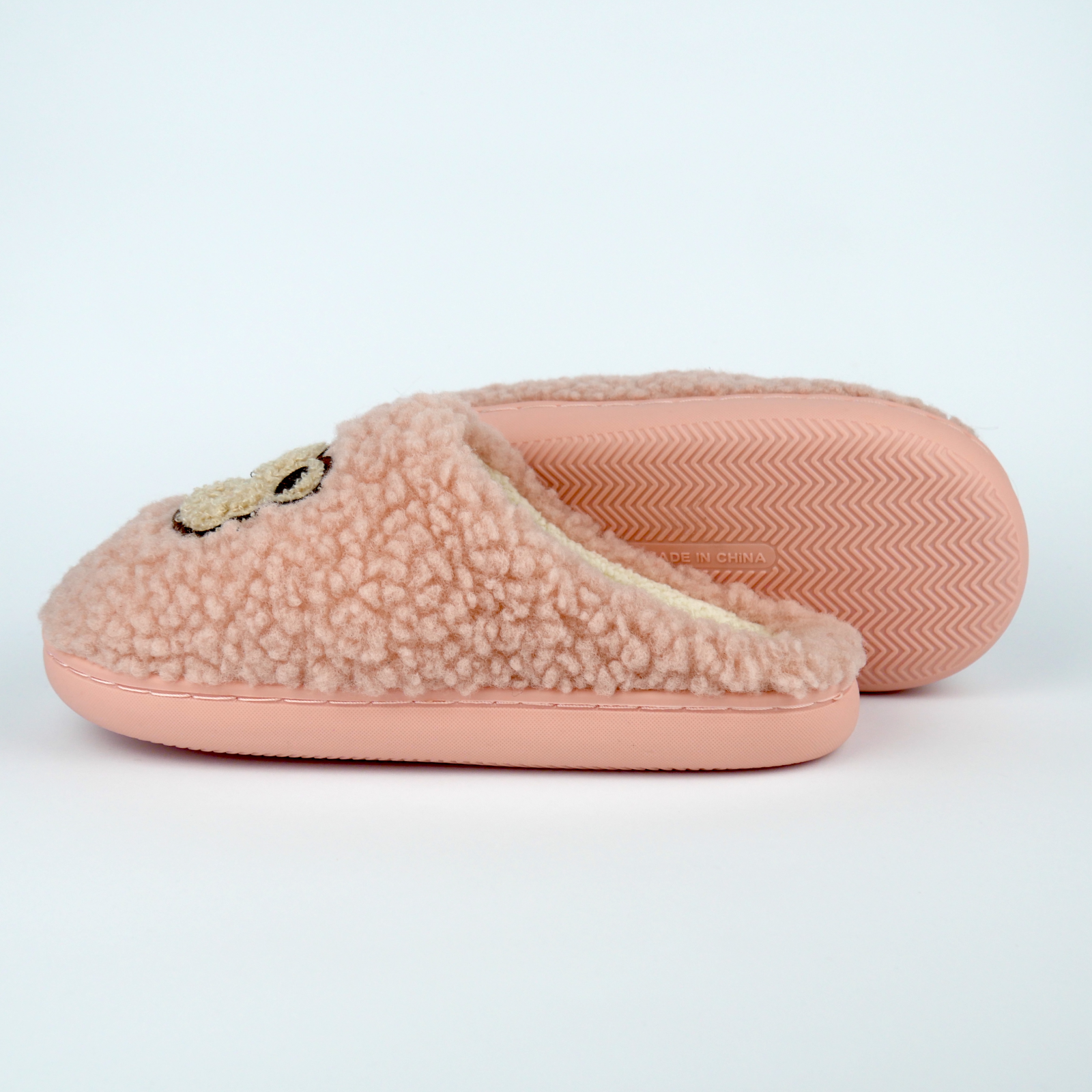 Це м’які закриті тапочки ніжно-рожевого кольору з плюшевого матеріалу. Усередині мають теплу підкладку для комфорту, а спереду прикрашені милим зображенням ведмедика. Ідеальні для дому в холодну пору року.