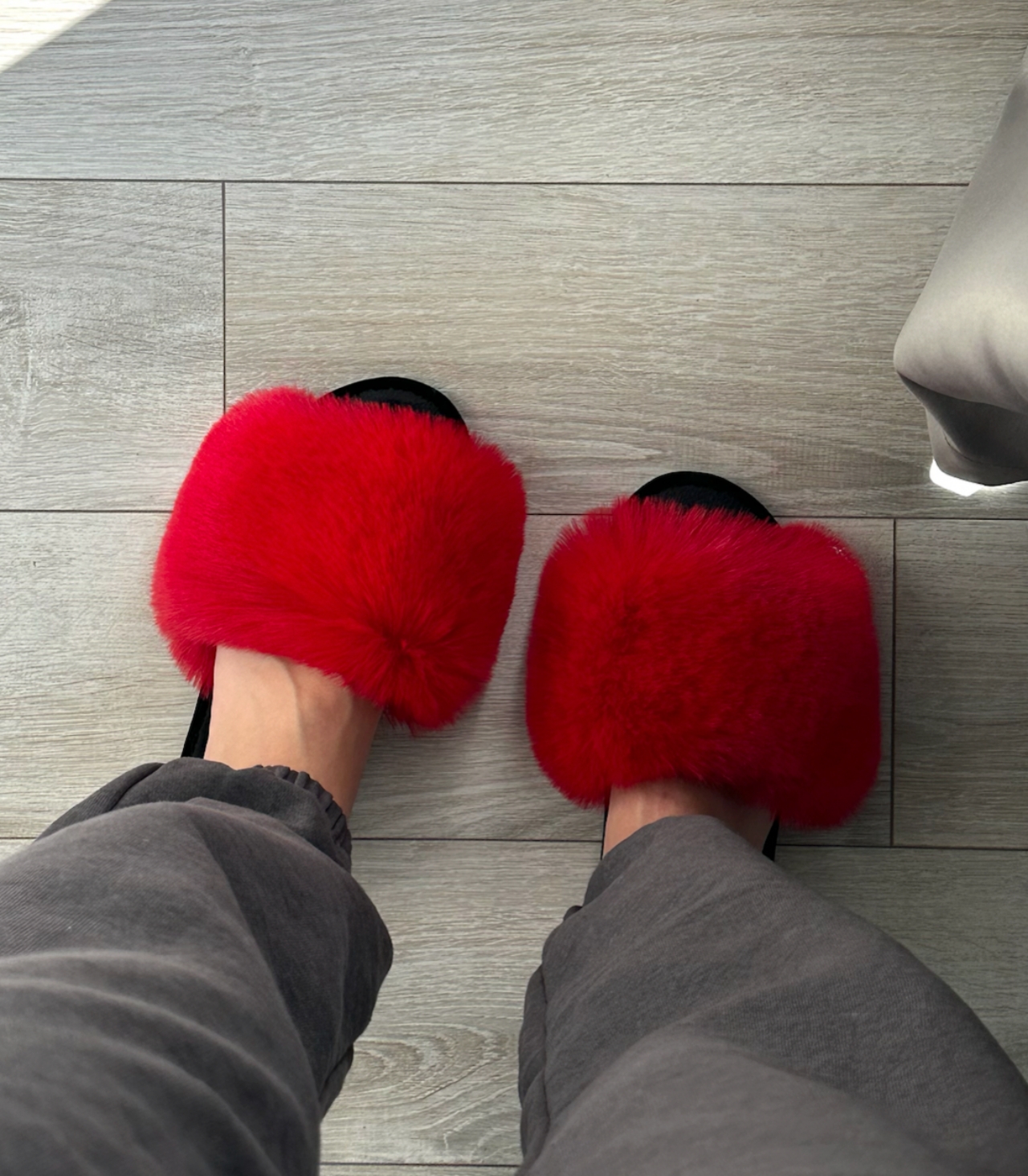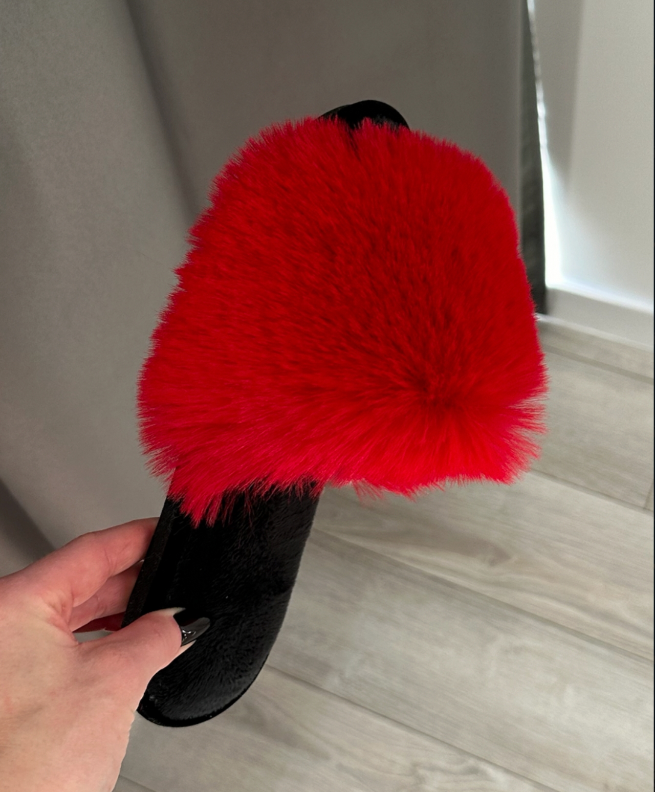 Жіночі домашні капці Halluci з хутра у червоно-чорному кольорі — це модель для тих, хто не хоче обмежуватись нейтральними відтінками навіть удома. Насичений червоний верх привертає увагу, додає енергії та робить домашній образ більш живим. Якщо потрібні червоні пухнасті домашні капці, які справді виглядають ефектно, ця пара одразу дає потрібний візуальний акцент.