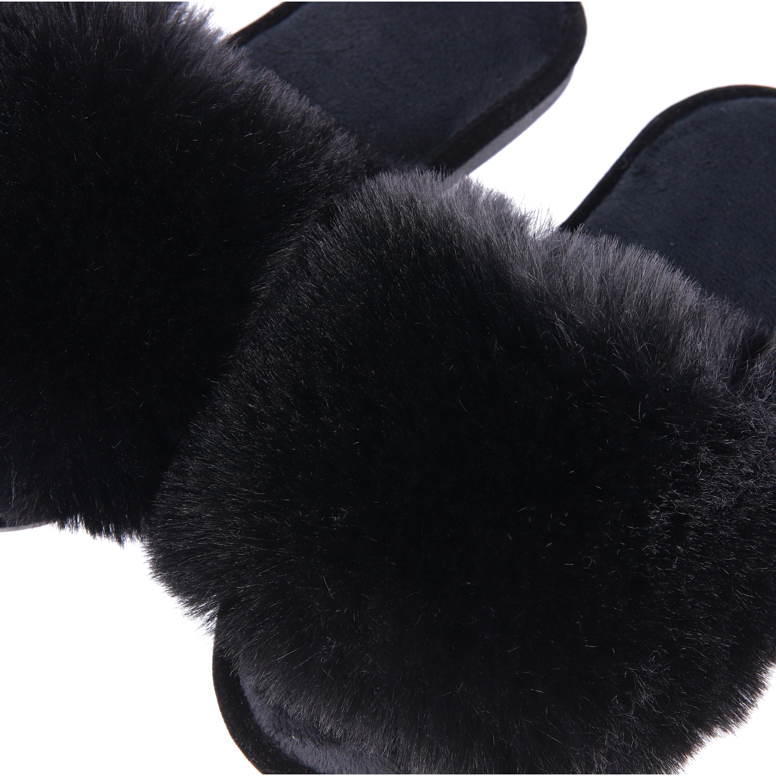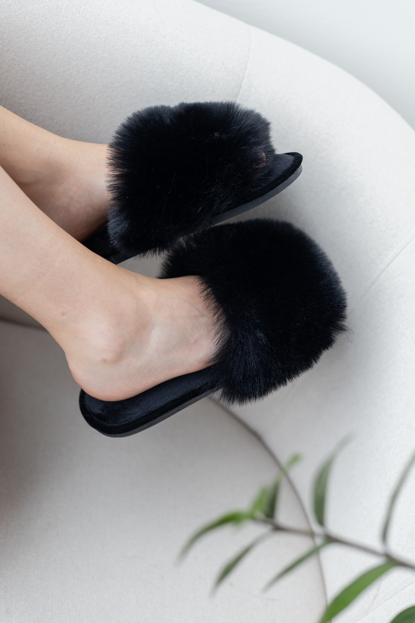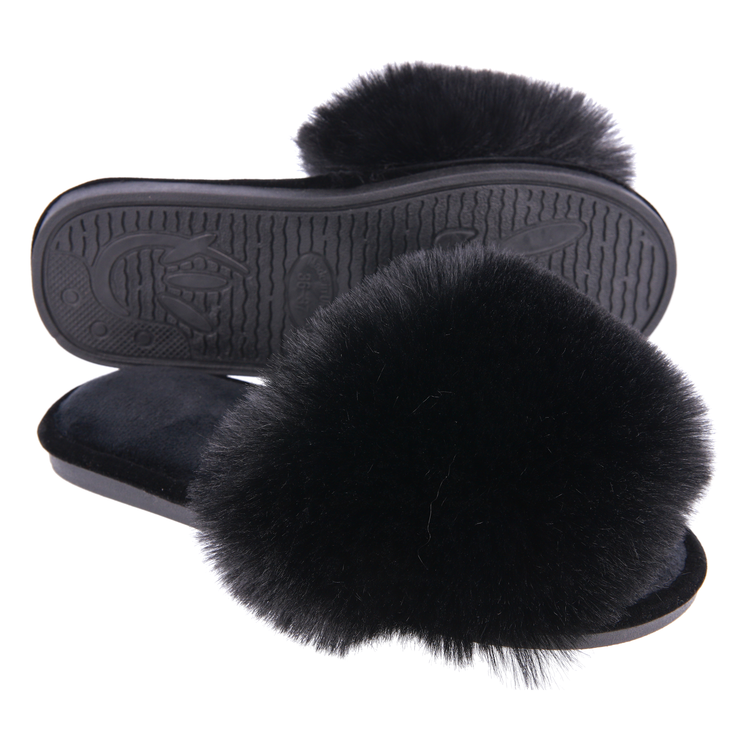 Жіночі домашні капці Halluci з хутра у чорному кольорі