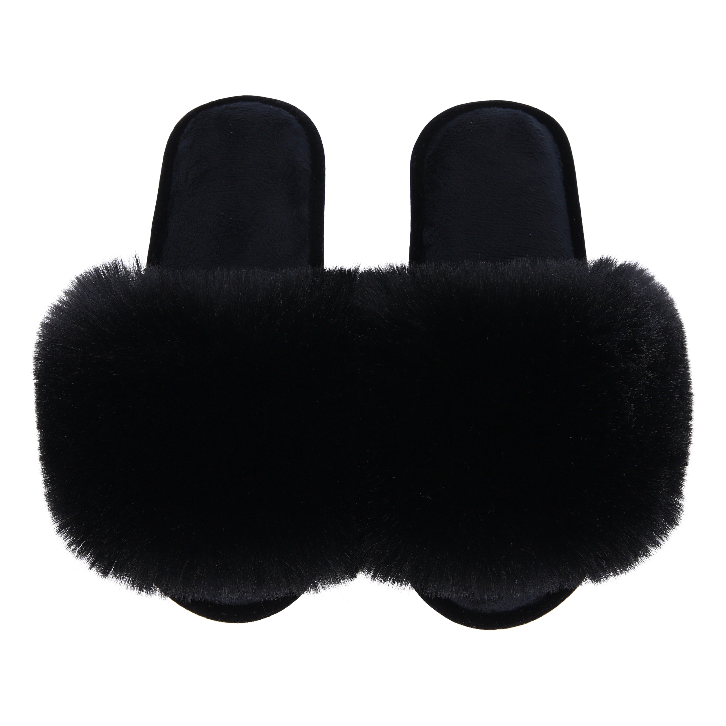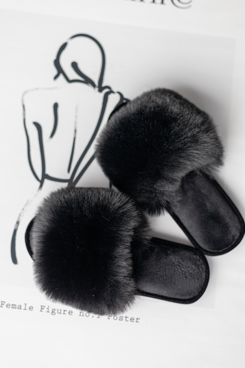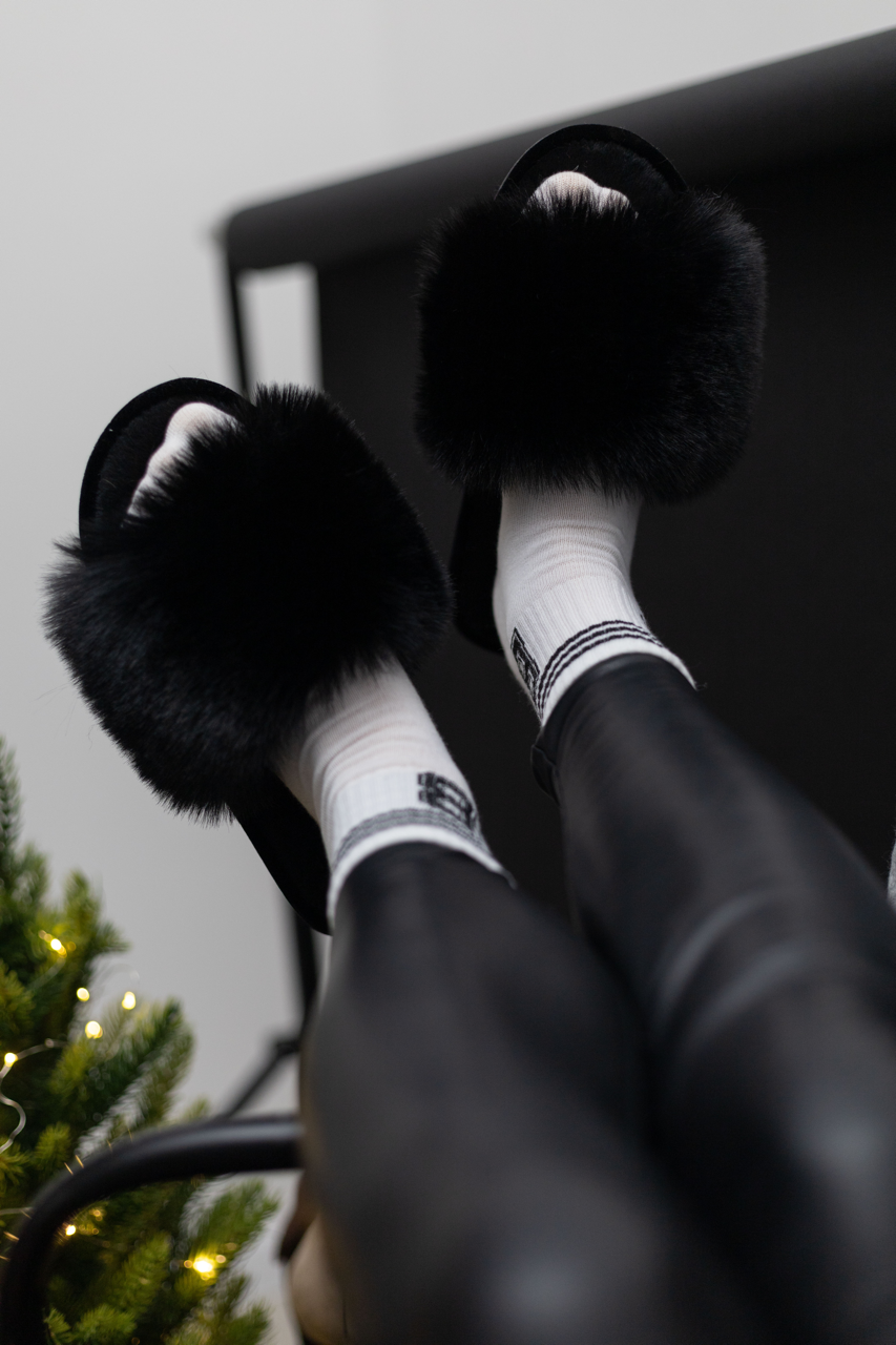 Жіночі домашні капці Halluci з хутра у чорному кольорі