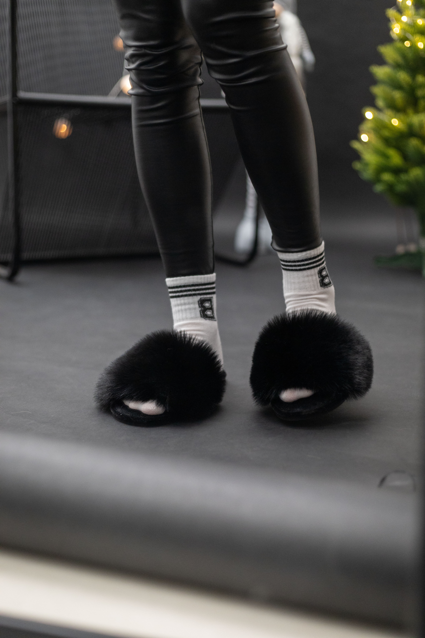 Halluci у чорному кольорі підійдуть і для себе, і як подарунок. Вони поєднують тепло, м’якість і стриманий дизайн, який не набридає з часом. Турецьке еко-хутро створює приємне тактильне відчуття, а чорна база робить модель більш практичною в щоденному користуванні.