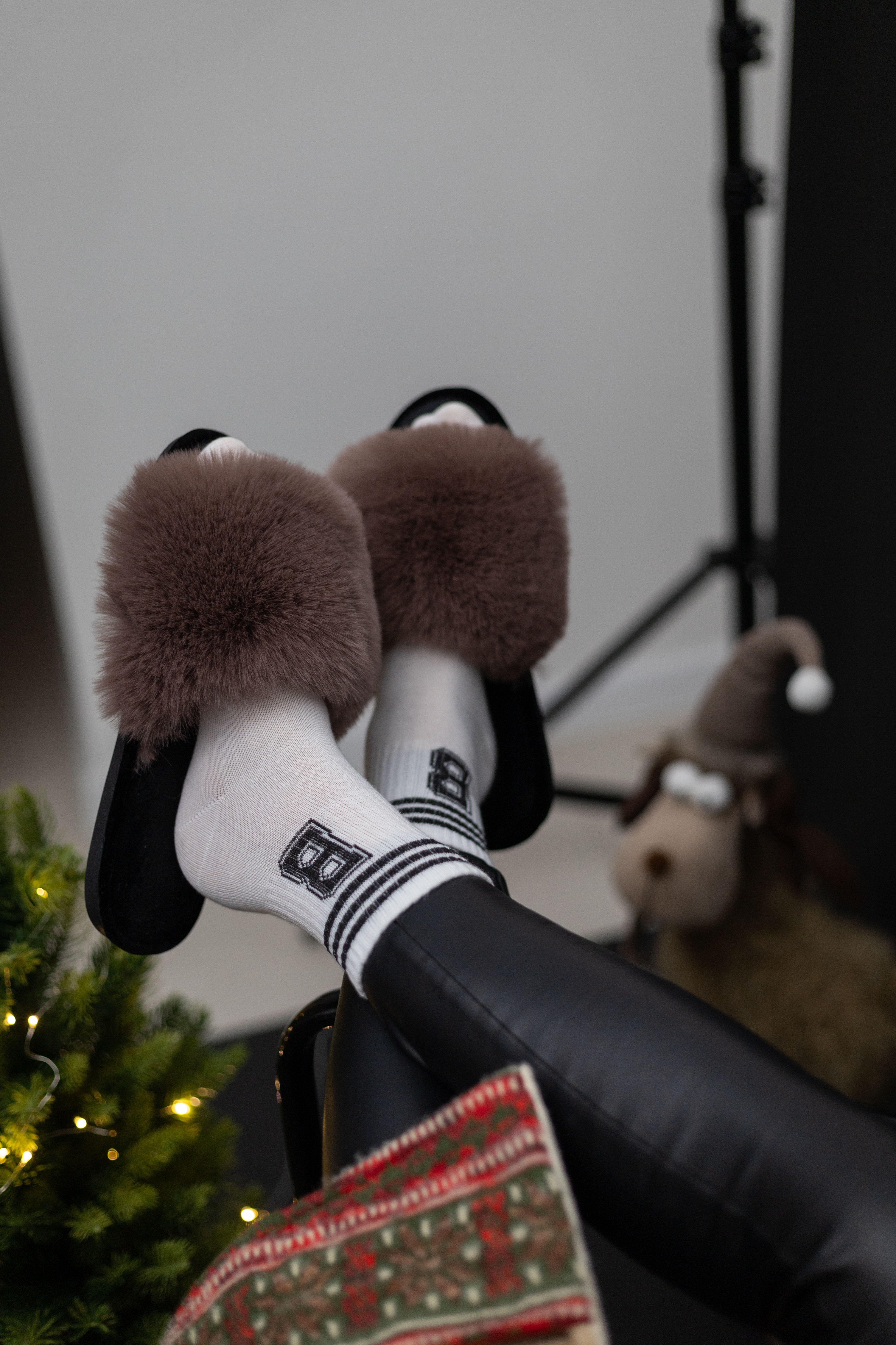 Коричнево-чорна Halluci добре підійде тим, хто хоче купити жіночі домашні капці не лише для тепла, а й для акуратного щоденного вигляду. Цей відтінок менш маркий у візуальному сприйнятті, м’яко вписується в сезонний домашній гардероб і не втомлює око. Саме тому модель часто сприймається як більш спокійний і практичний варіант для щоденного носіння.