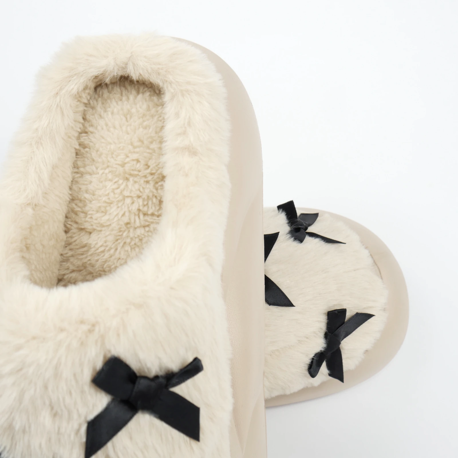 За ключовими запитами бежеві домашні капці, жіночі теплі тапочки, капці для дому жіночі і тапочки з бантиками ця модель має добру релевантність завдяки кольору, декоративній подачі та домашньому сценарію використання.