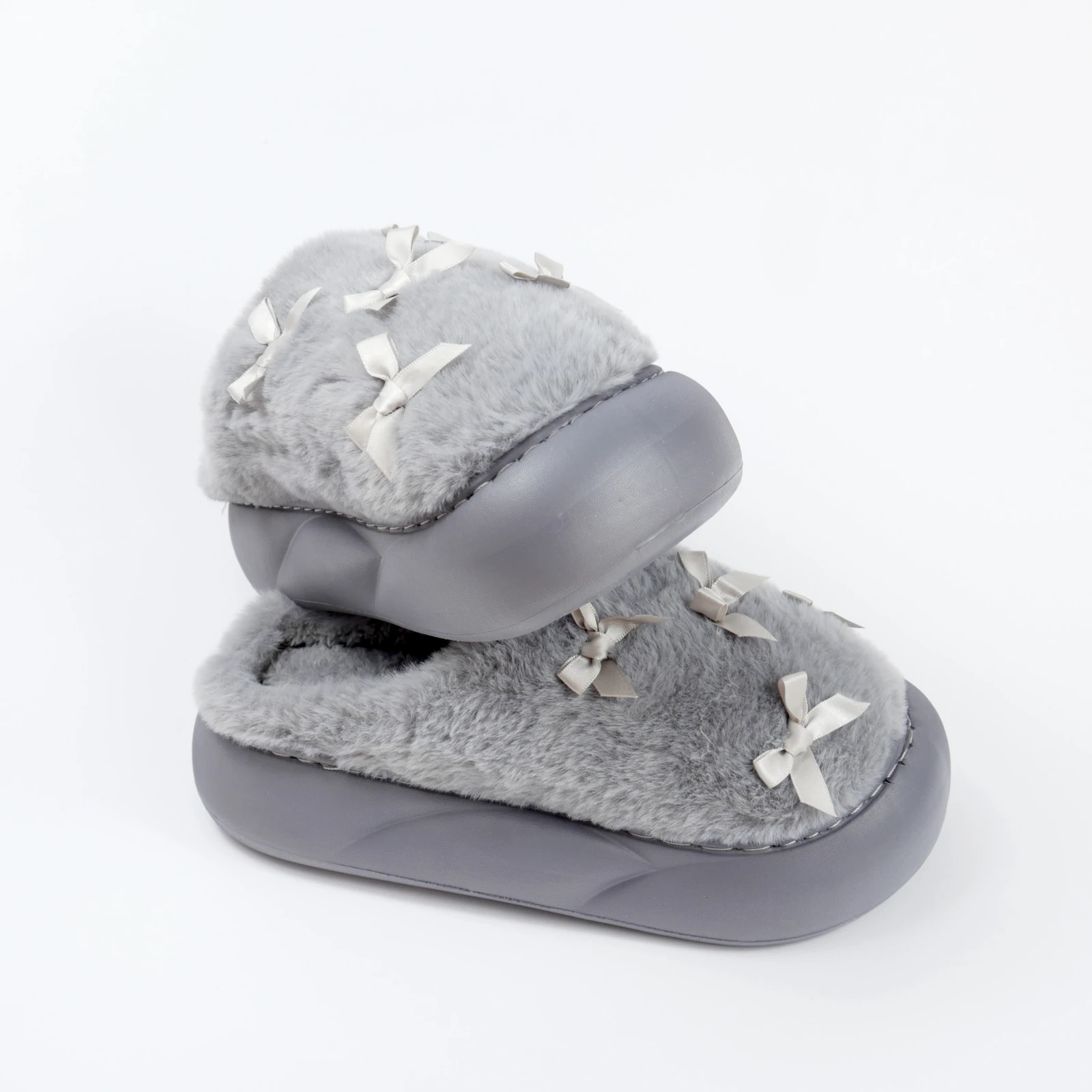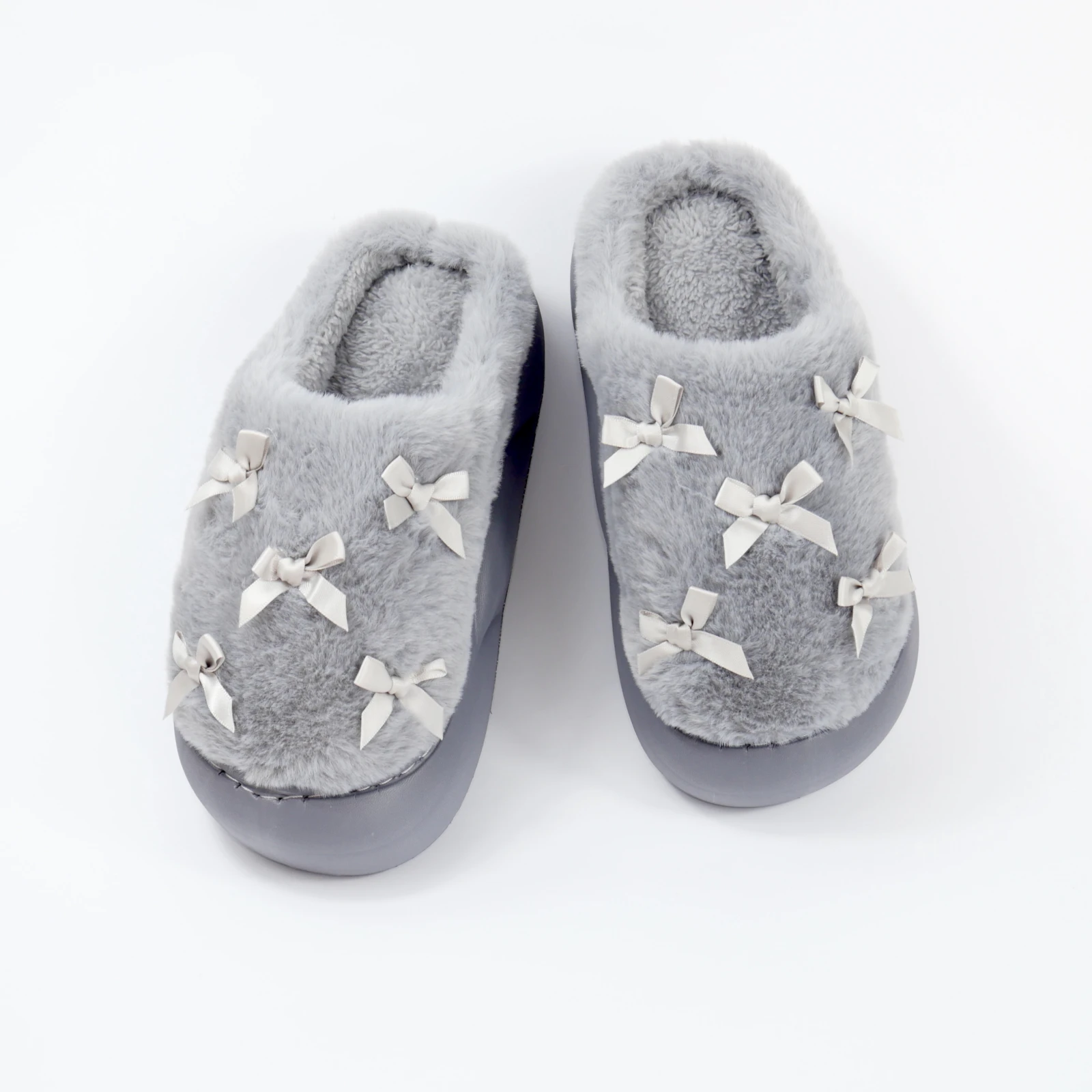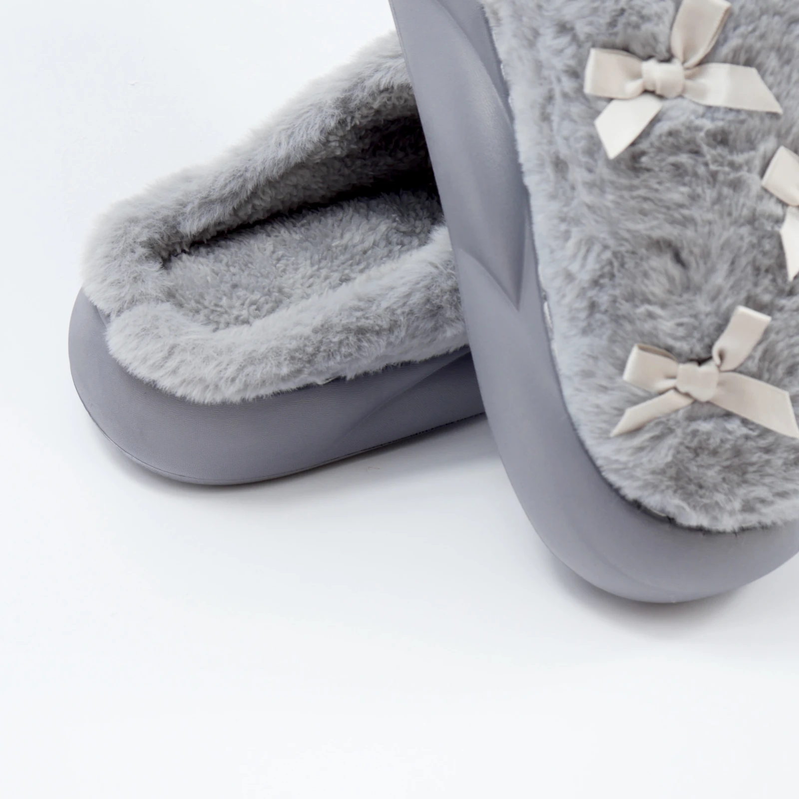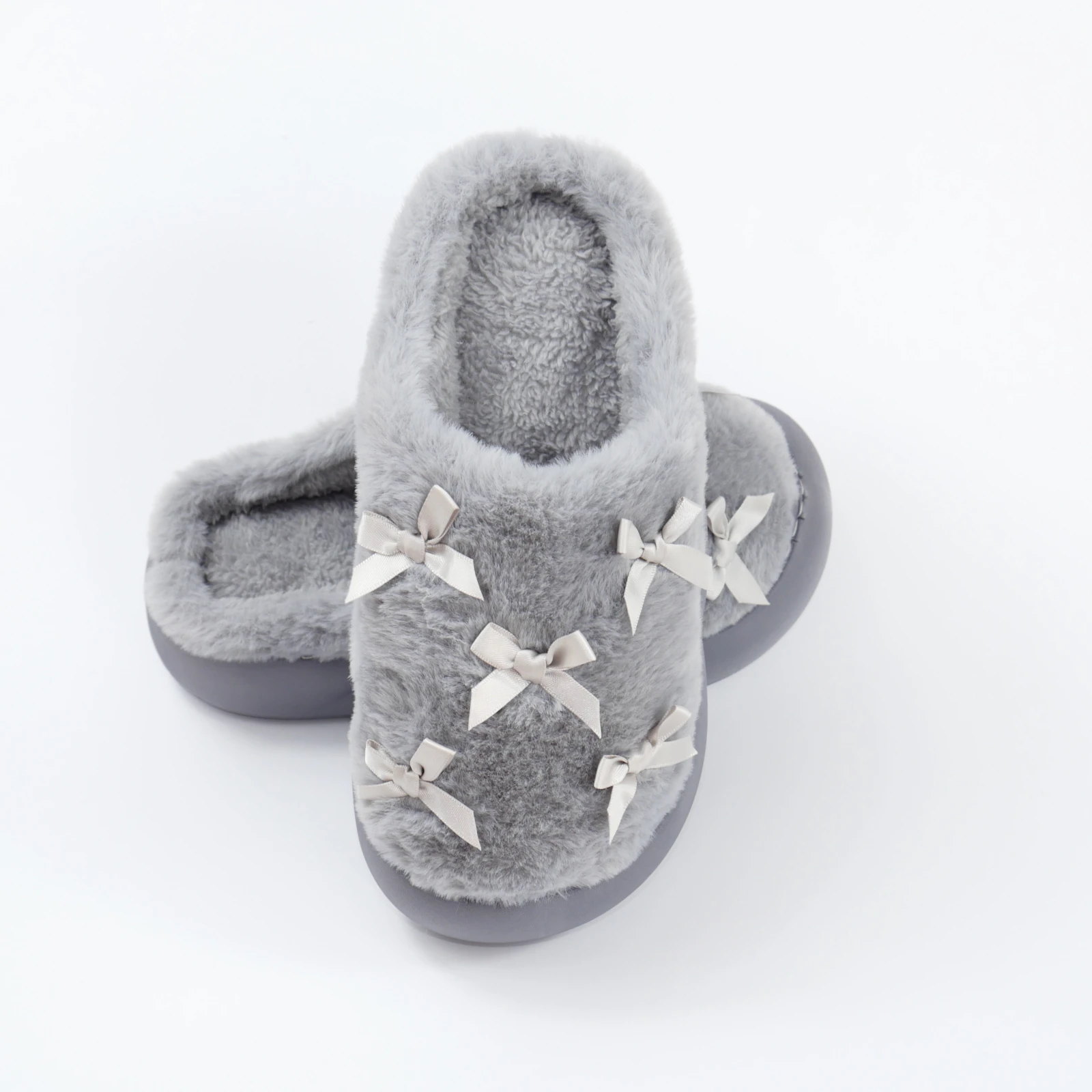Сірі жіночі домашні капці з бантиками — стримана й затишна модель для тих, хто любить спокійні відтінки, практичність і м’який комфорт у домашньому взутті.